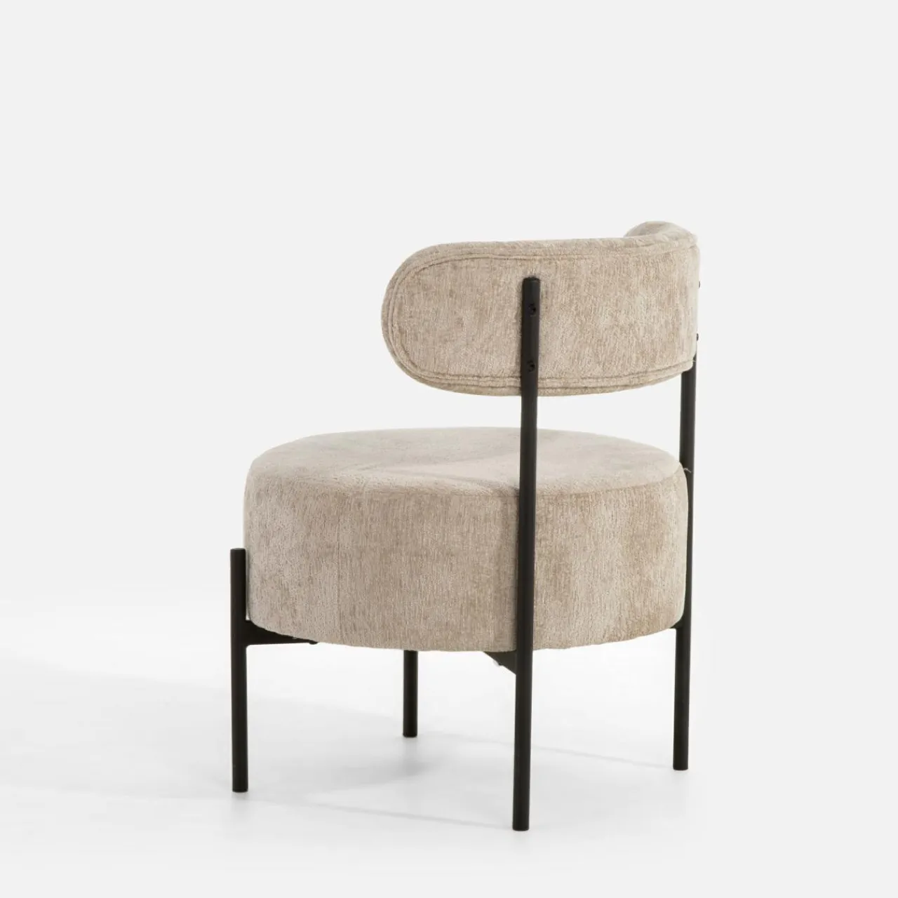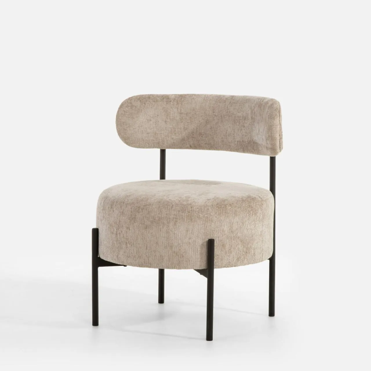 Rozsiądź się wygodnie w fotelu LUPUN i odpocznij po ciężkim dniu. Mebel wyróżnia się beżową welurową tapicerką, która nadaje mu elegancki charakter. Tkanina jest miękka w dotyku i zapewnia komfort użytkowania.