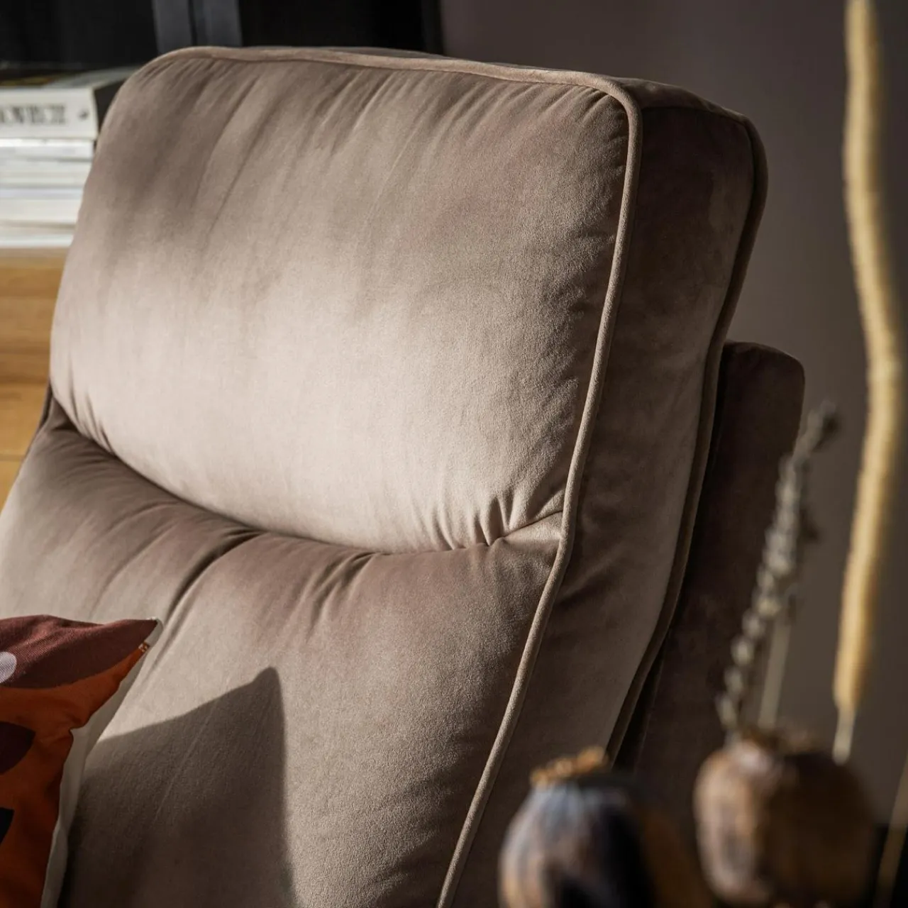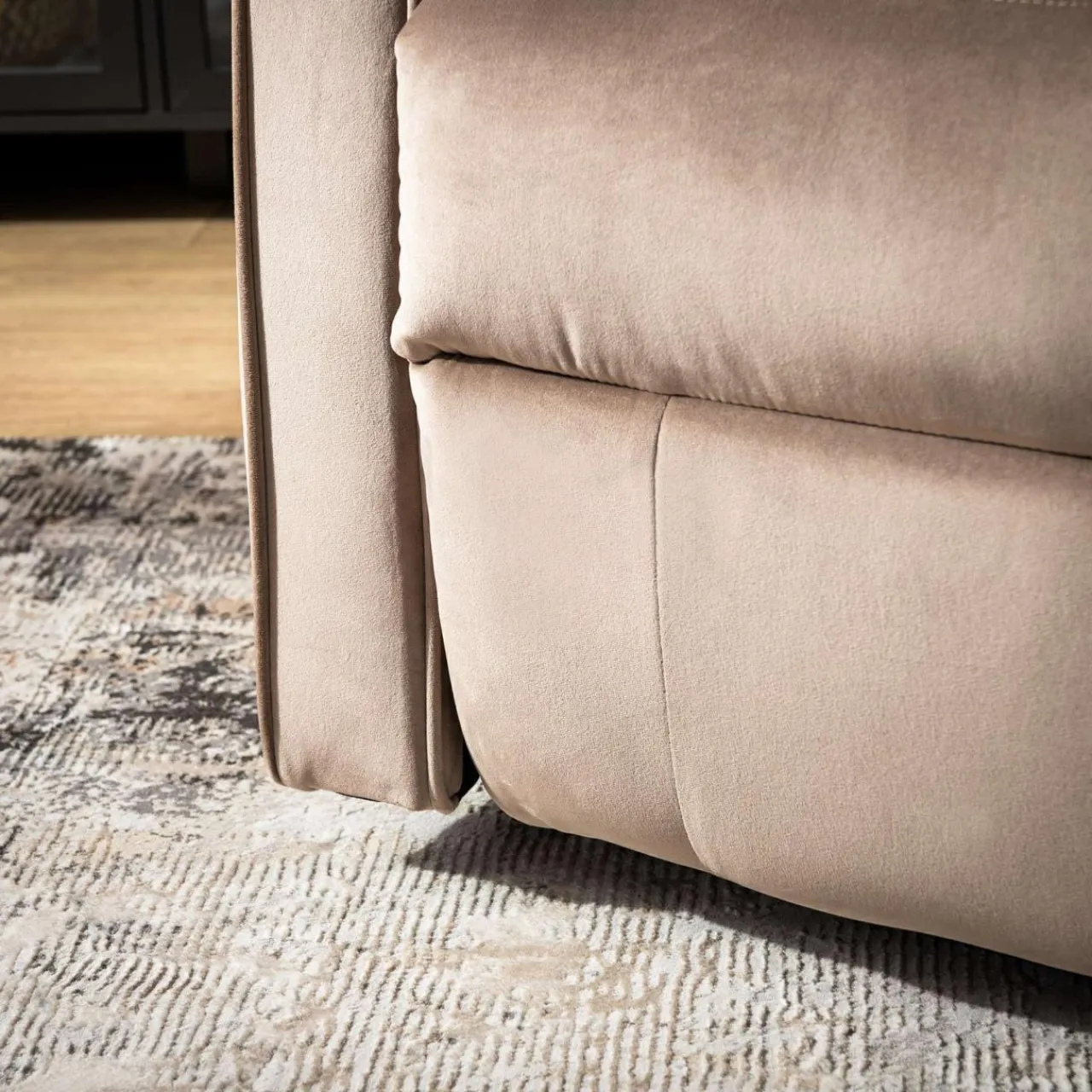 - Beżowy welur uzupełni minimalistyczny lub nowoczesny salon.