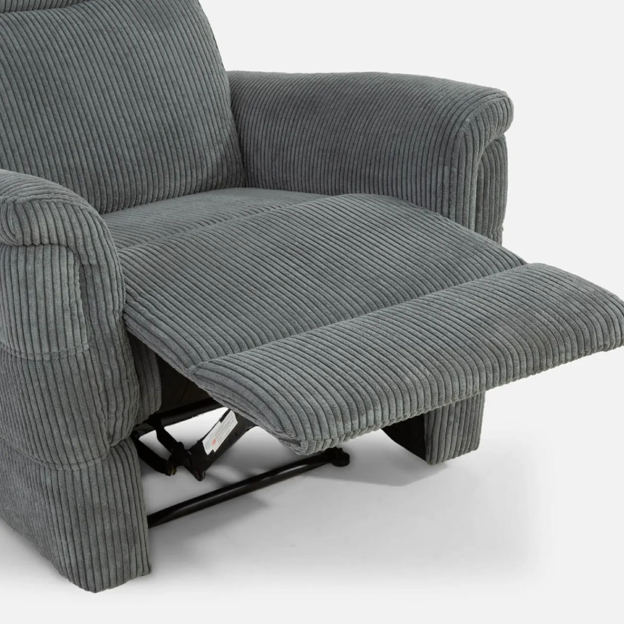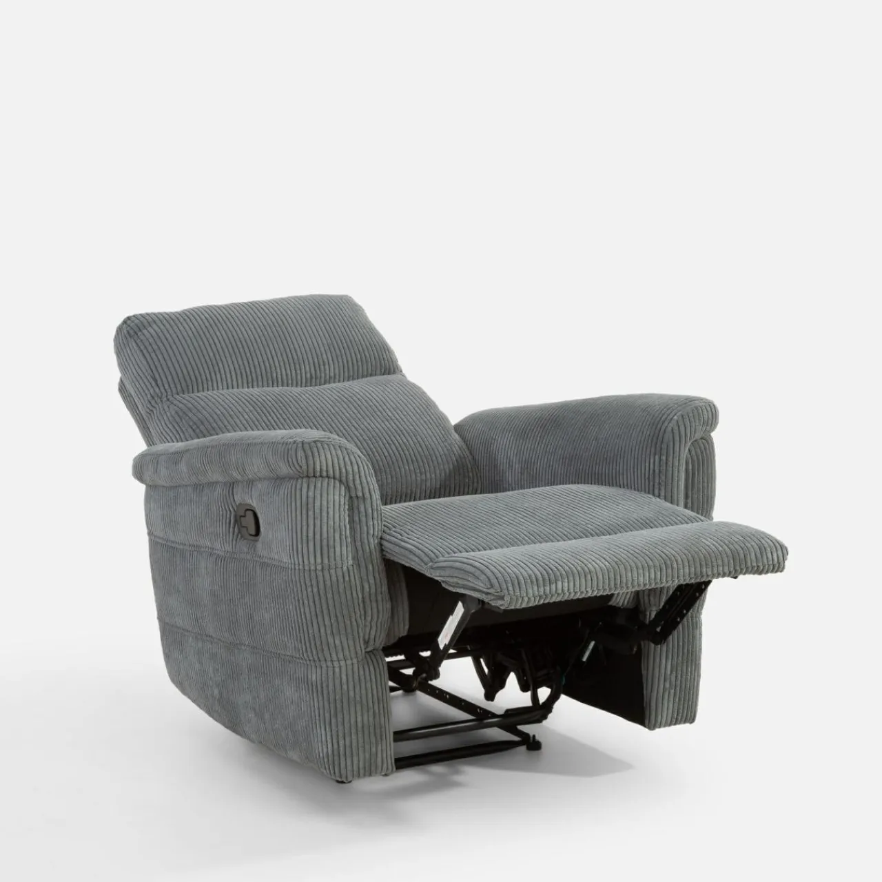 - Fotel posiada manualną funkcję relaksu – wystarczy jedno pociągnięcie dźwigni, by odetchnąć w komfortowej pozycji półleżącej.