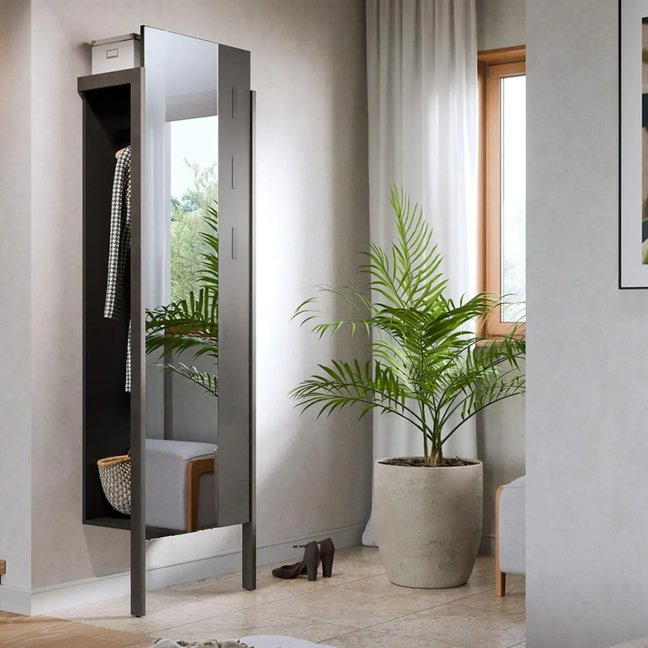 - Praktyczne lustro – wbudowane lustro optycznie powiększy przestrzeń i ułatwi codzienne przygotowania do wyjścia.