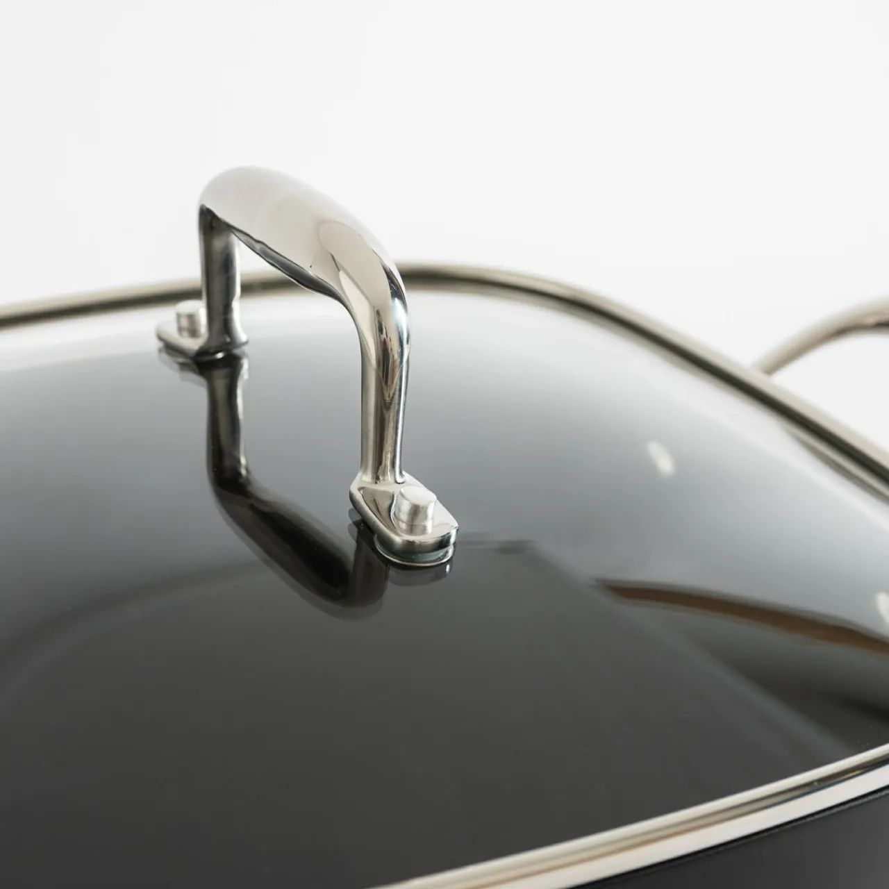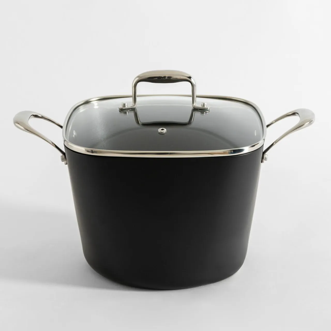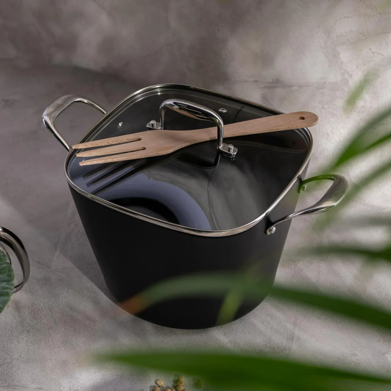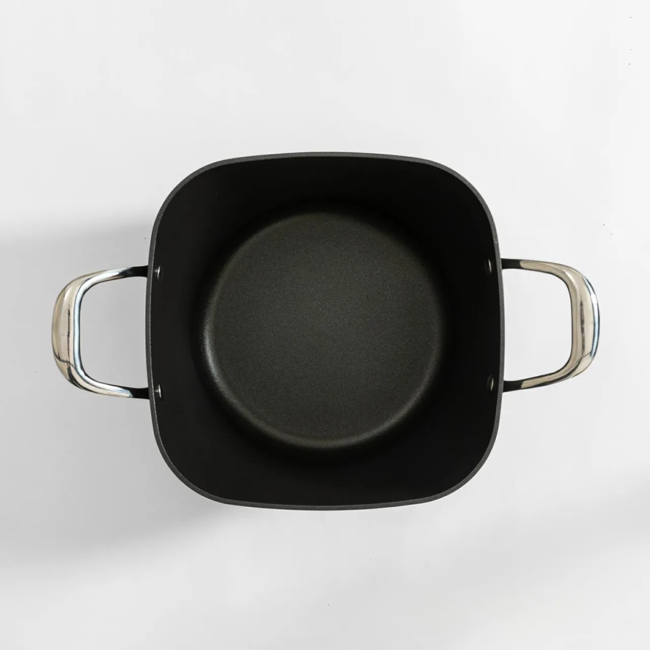 Aluminiowy garnek QUADRATO posiada kwadratową pokrywkę.