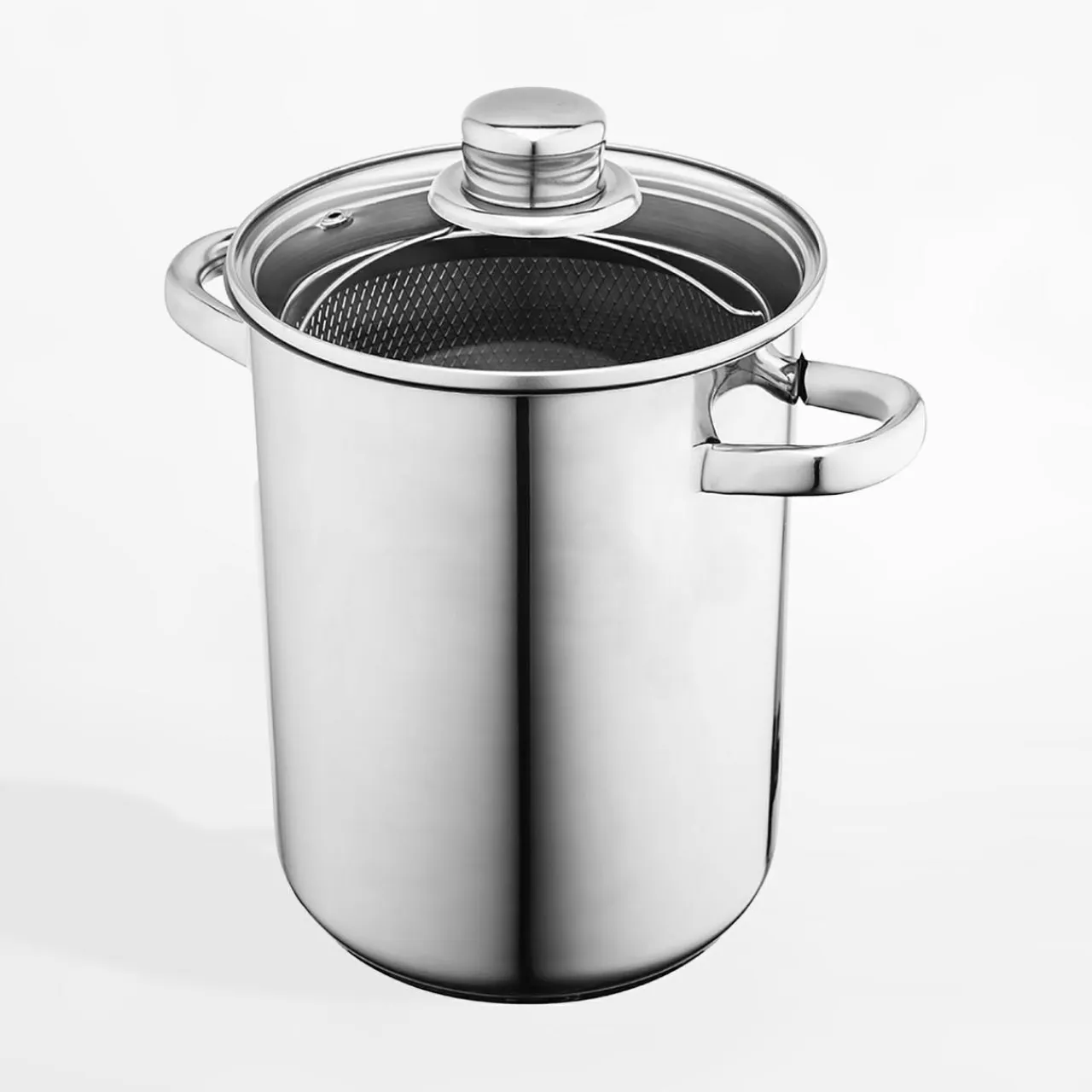 - Kosz z uchwytami ze stali nierdzewnej sprawia, że cedzenie staje się bezproblemowe.