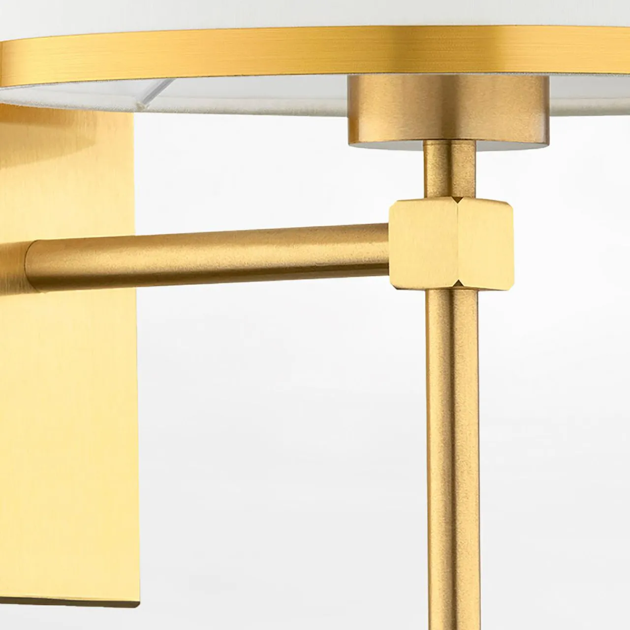 - Abażur z tkaniny ma gładką powierzchnię, która została obramowana złotym, połyskującym wykończeniem – przyciąga uwagę i rozjaśnia optycznie wnętrze.