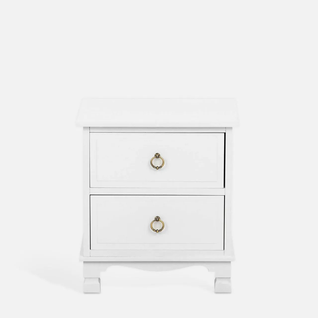 Jest idealna do eleganckiej sypialni z białymi motywami. Szafka nocna CLESS zachwyca ozdobnymi uchwytami i podstawą inspirowaną stylem klasycznym.
