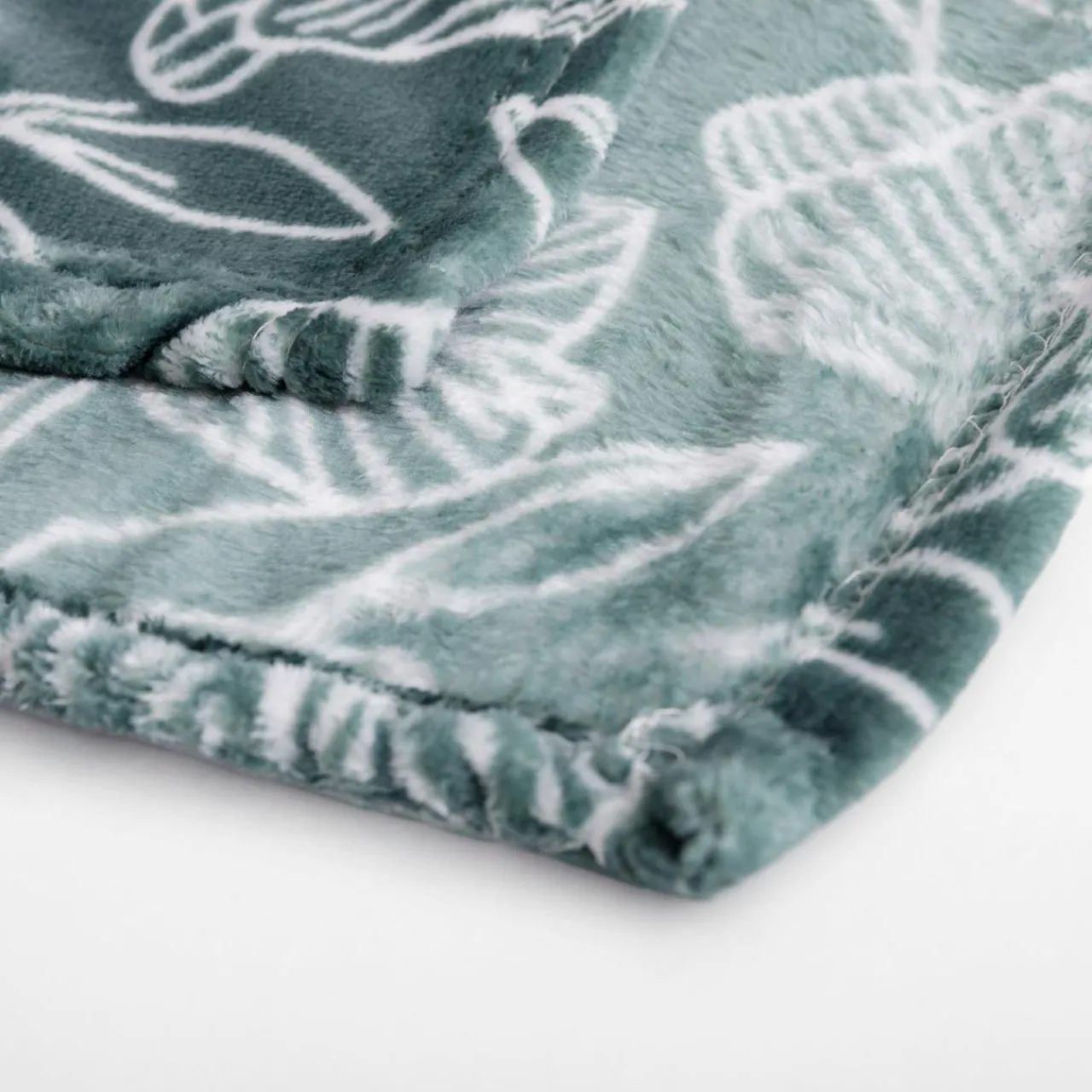 Turkusowy koc CODIE w białe kwiaty podkreśli salon lub sypialnię, w którym wypoczywasz.