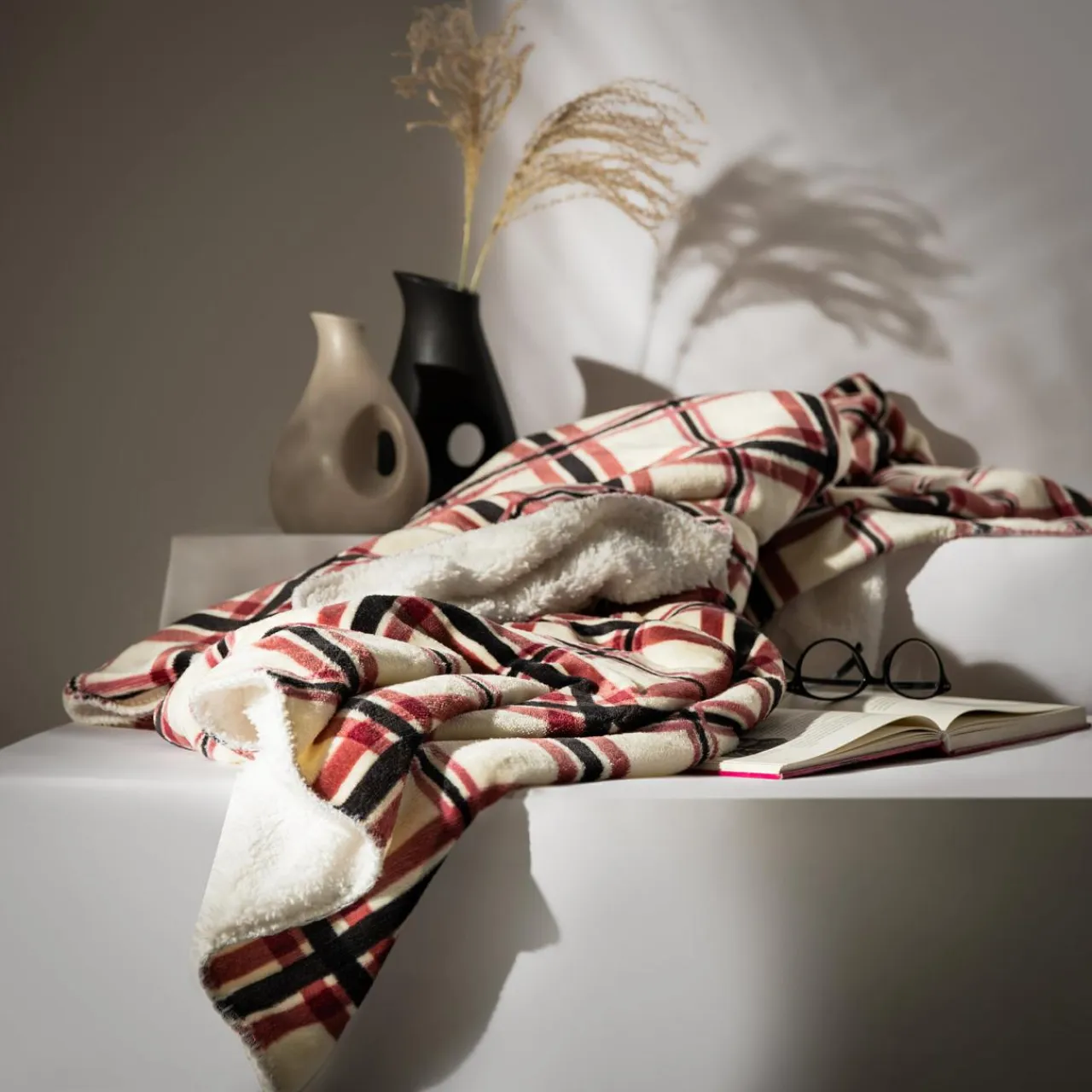 Koc DOLLY jest uszyty z miękkiego i wytrzymałego poliestru. Klasyczny wzór w kratkę dopasujesz się w różnych aranżacyjne pomysły.