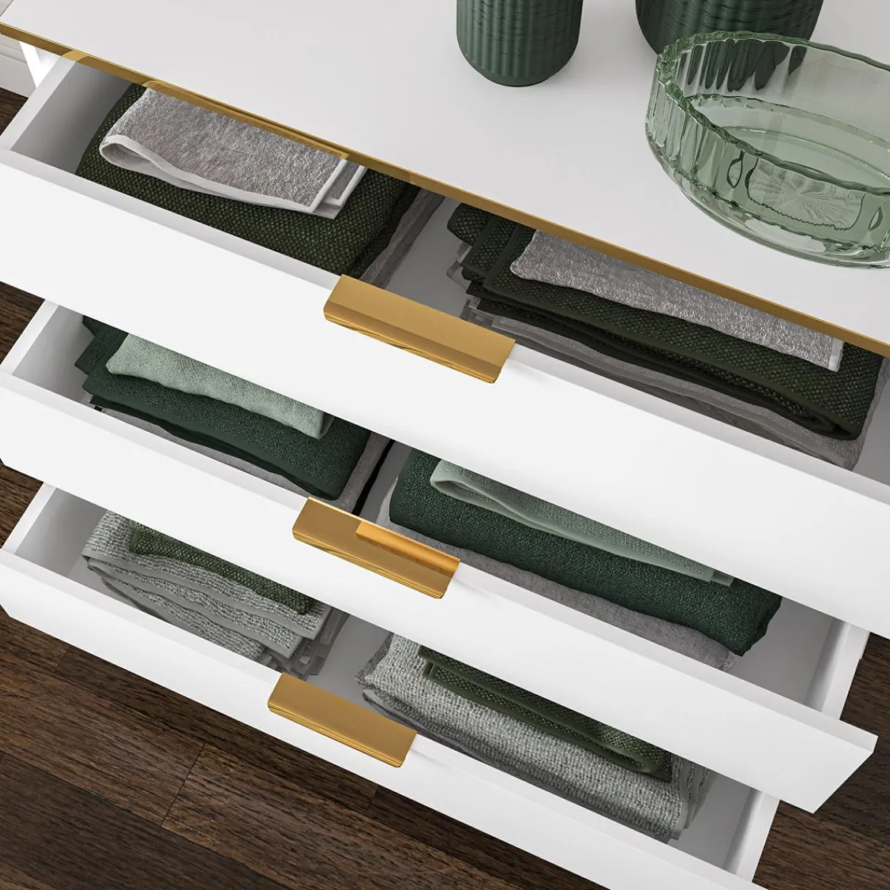 - Zamykaj bez hałasu – fronty szafek wyposażone są w zawiasy z cichym domykiem.