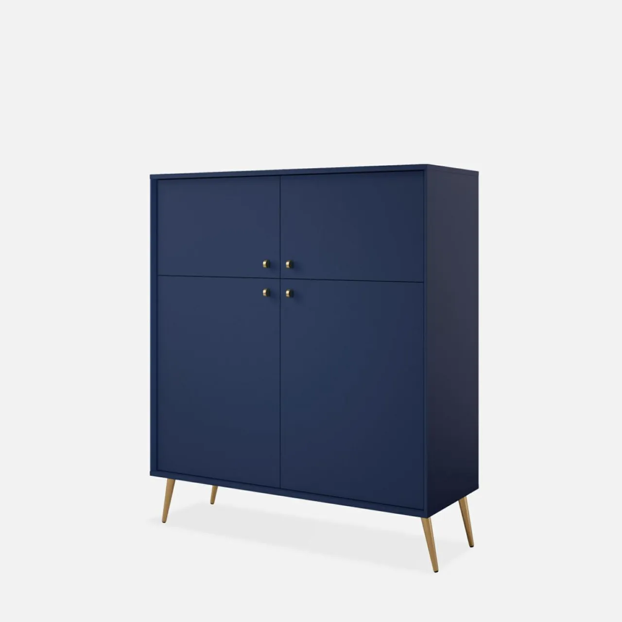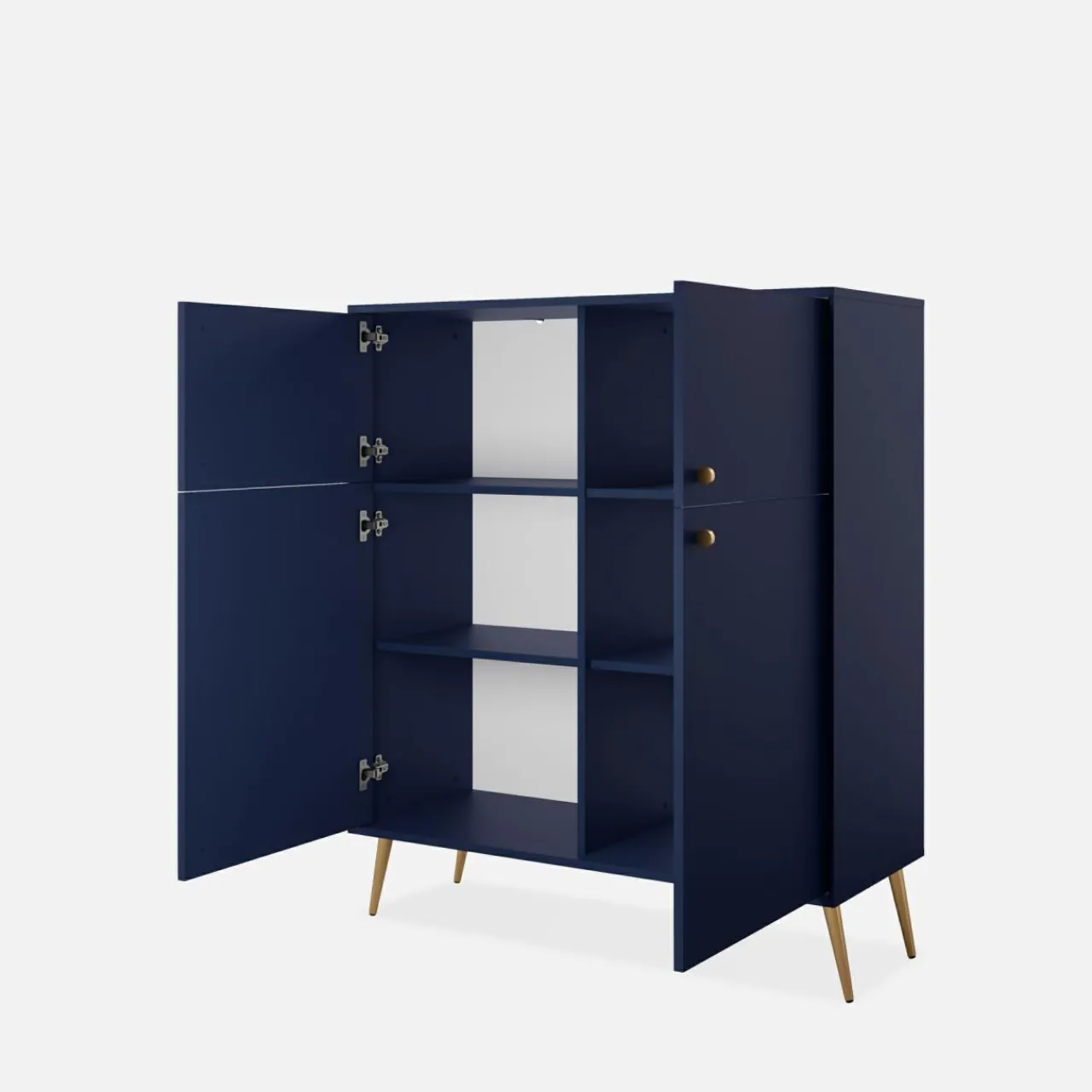 - Złote uchwyty i nóżki dopełniają mebel, dodając elegancji.