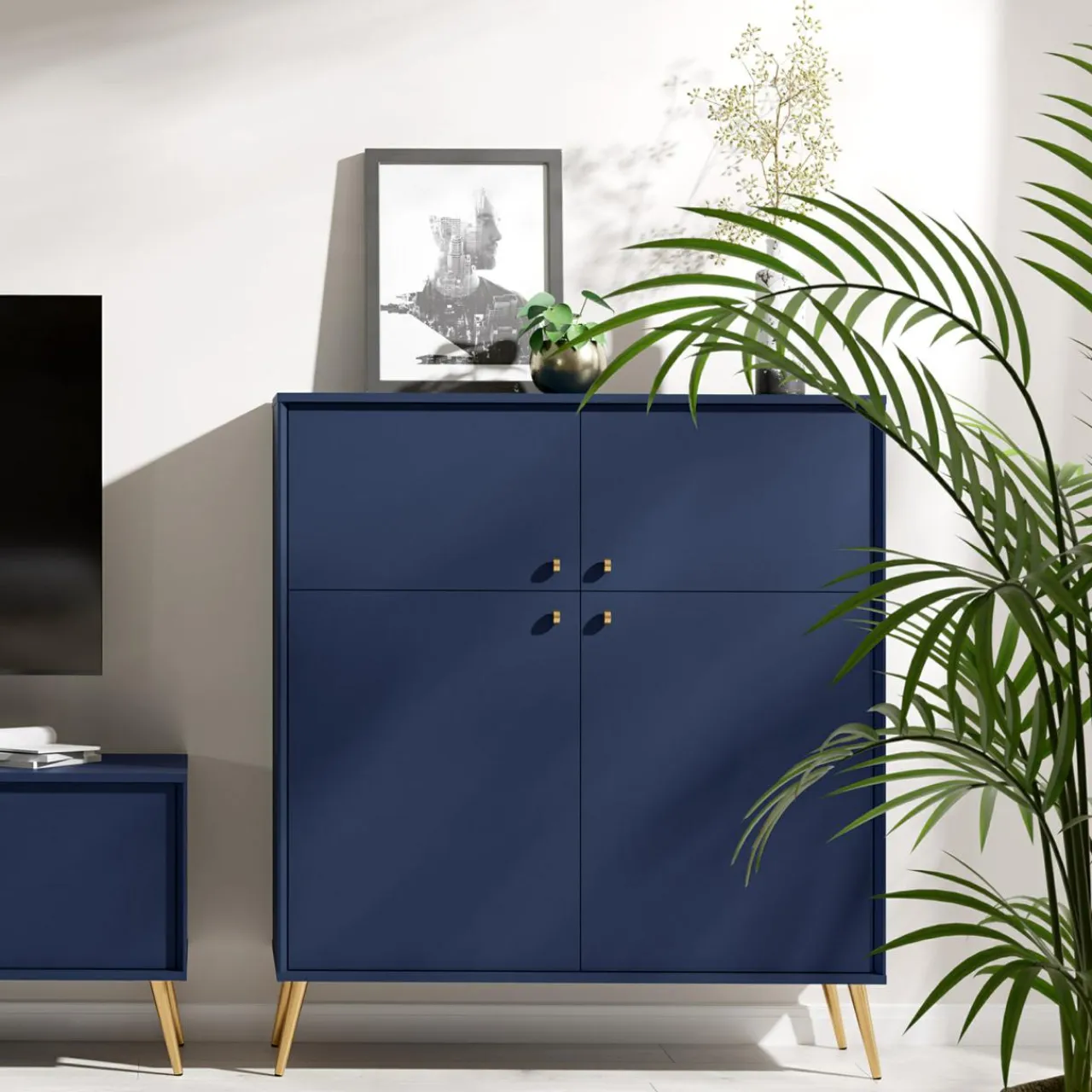 - Granatowe meble stworzą wyjątkowe wnętrze w stylu glamour, marynistycznym czy new hampton.