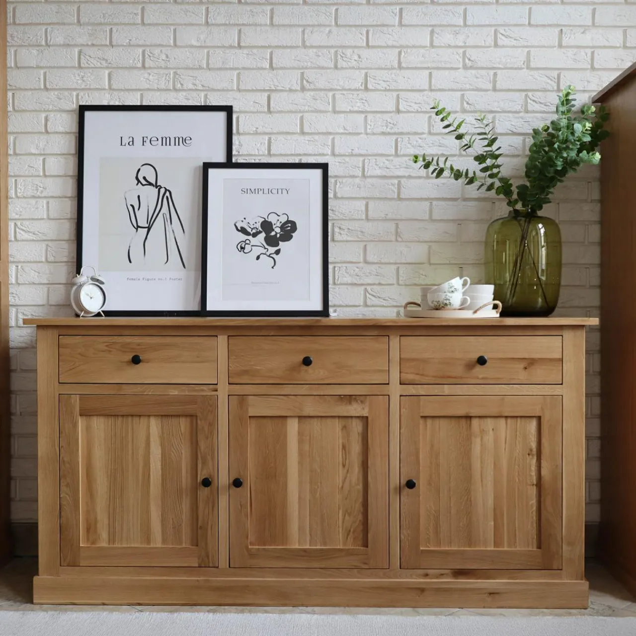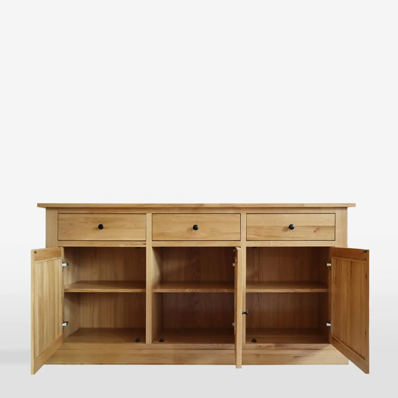 Komoda STELLA to klasyczny mebel wykonany z litego drewna w odcieniu dąb naturalny. Dzięki 3 przestronnym sekcjom za drzwiczkami, oferuje dużą ilość miejsca na przechowywanie, co czyni ją praktycznym dodatkiem do salonu, sypialni czy jadalni. Jej ponadczasowy design wpisuje się w klasyczne i rustykalne aranżacje wnętrz.