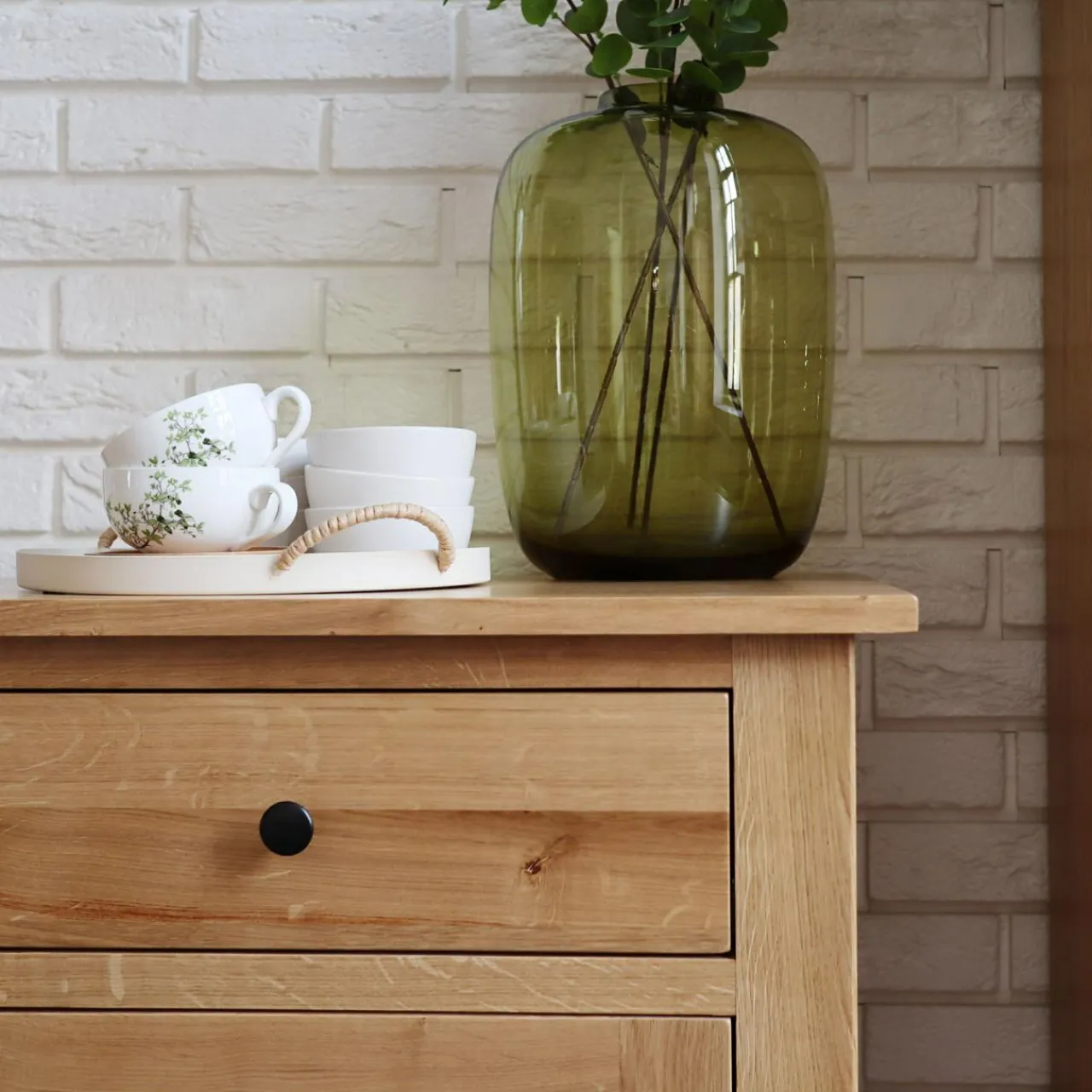 - Solidna konstrukcja – lite drewno dębowe nadaje trwałości i odporności na upływ czasu, dzięki czemu komoda posłuży przez wiele lat.