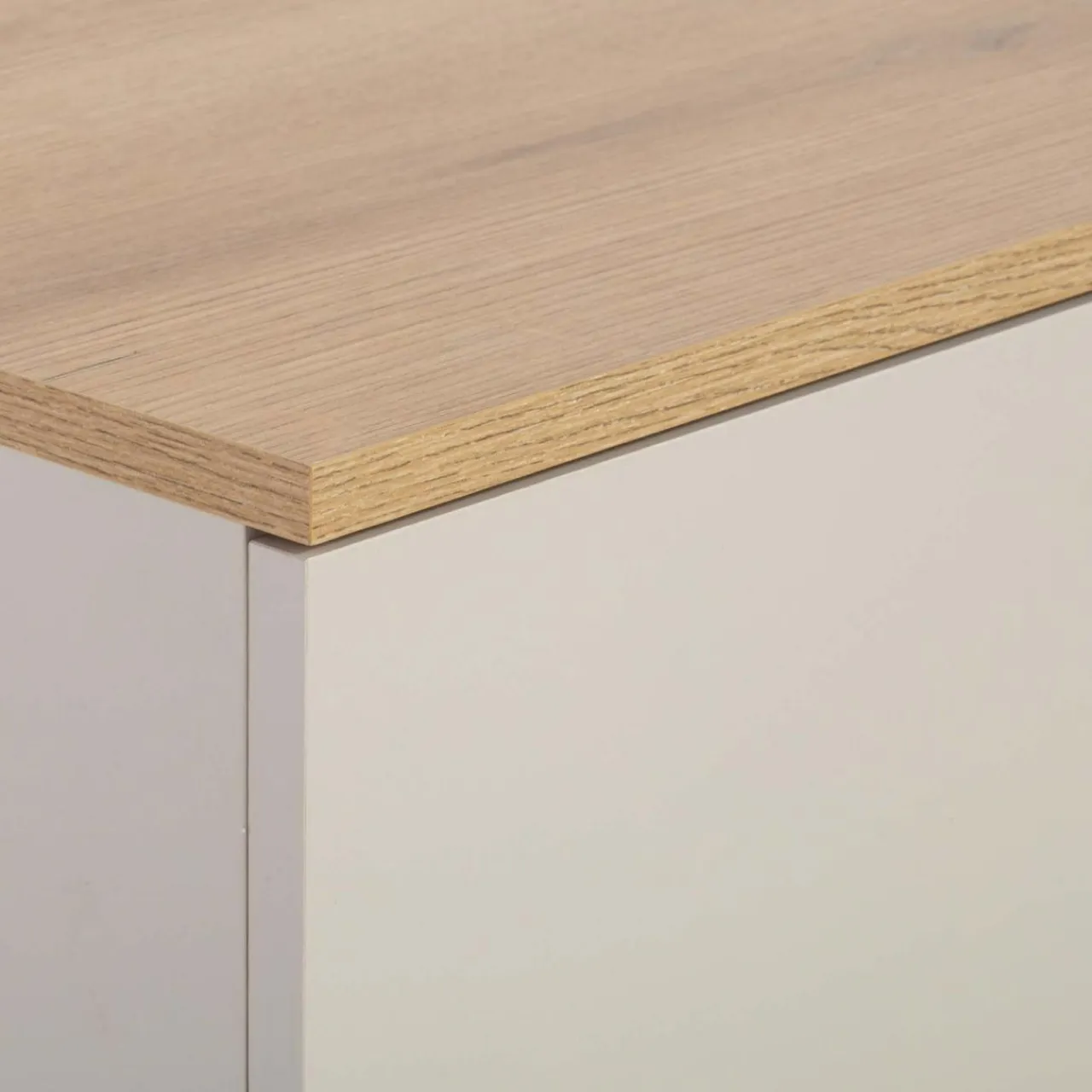 - Wykończenie w kolorze kaszmiru wprowadza elegancję i neutralność. Elementy z rysunkiem dębu evoke nadaje wnętrzu przytulny, naturalny akcent.