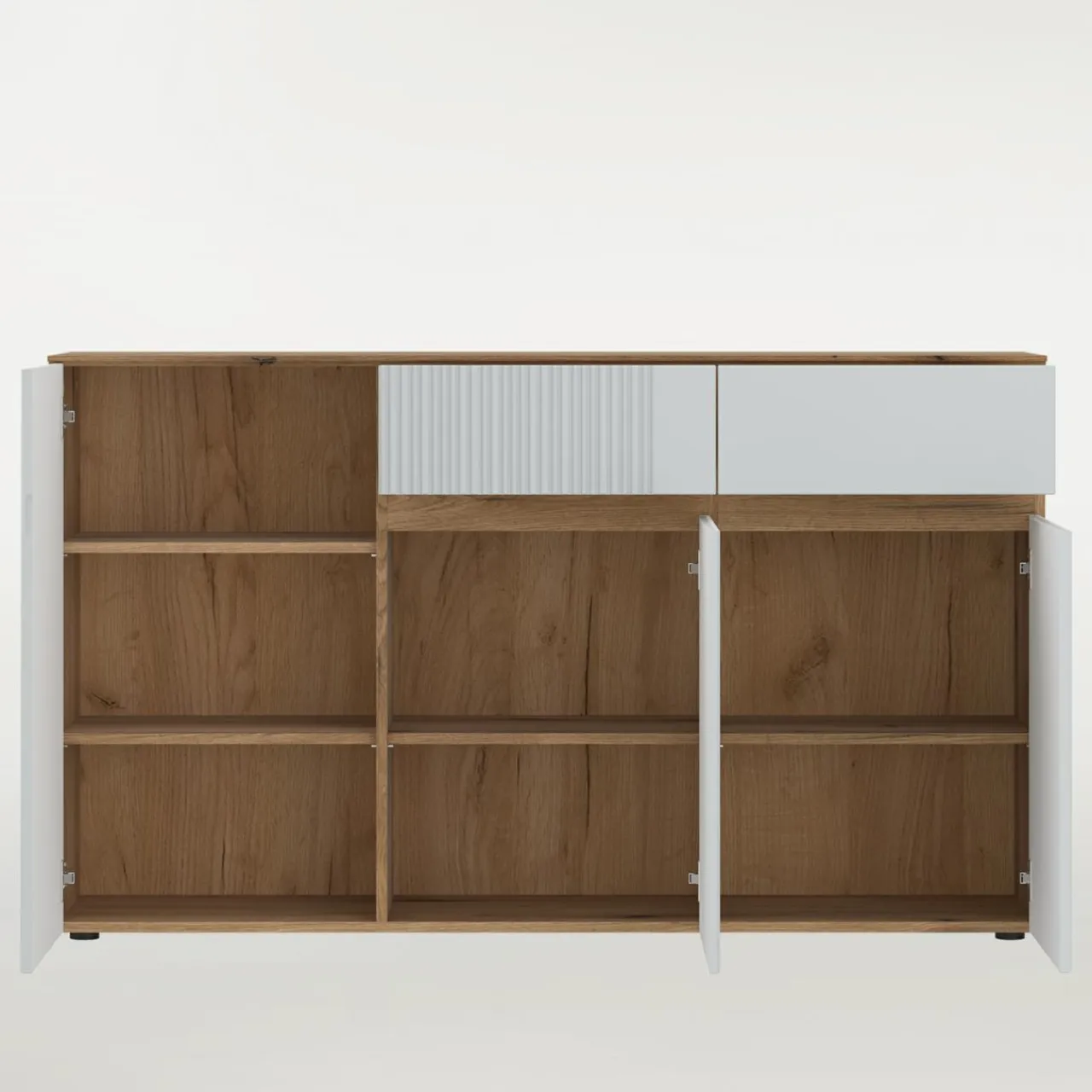 - Meble w wybarwieniu dębu coast evoke przypominają wyglądem naturalne drewno. Ciepły kolor dodaje przytulności, która zachęca do spędzania wolnego czasu w salonie.
