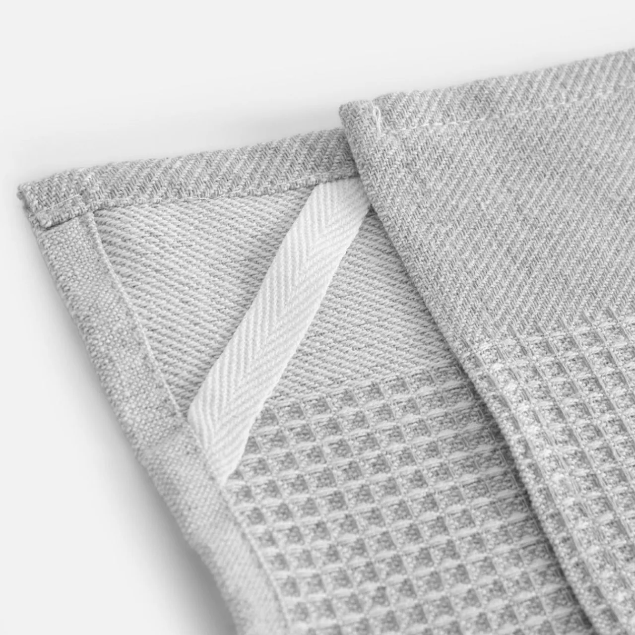 - Jasnoszare ręczniki kuchenne pasują do białych lub kremowych mebli.