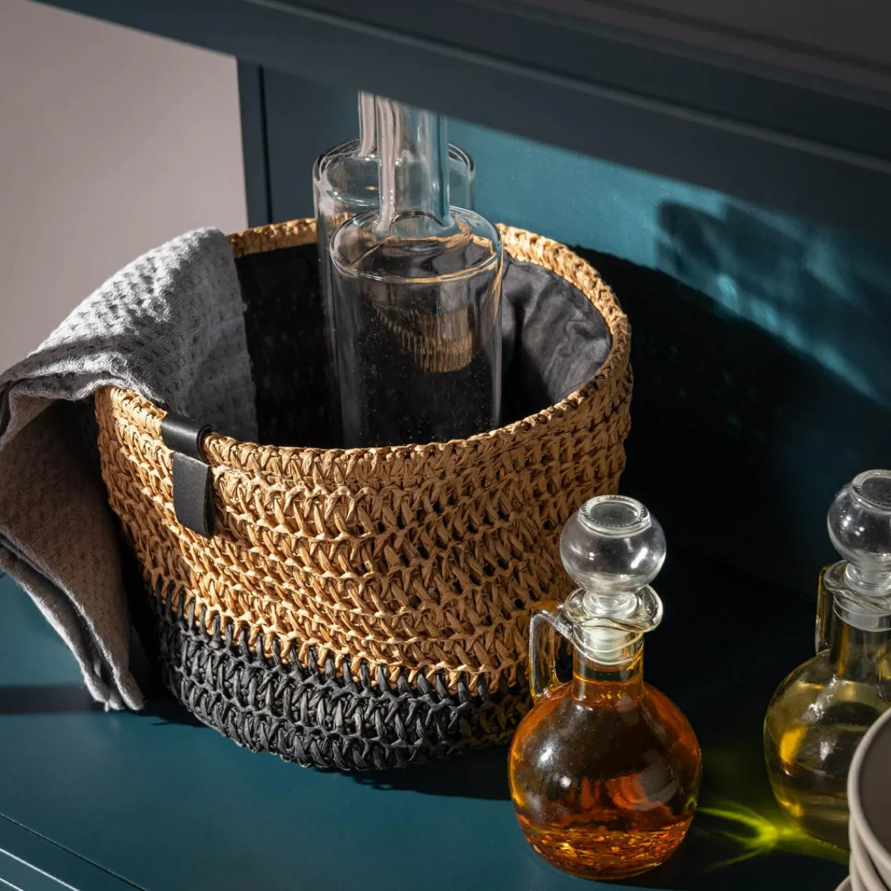 inny Komplet 3 koszy do przechowywania okrągłe brązowo-czarny