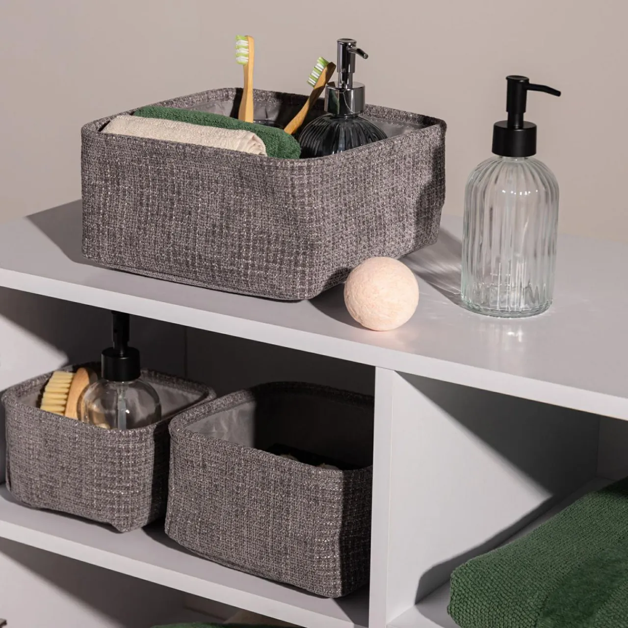 inny Komplet koszy do przechowywania szary, 3 sztuki