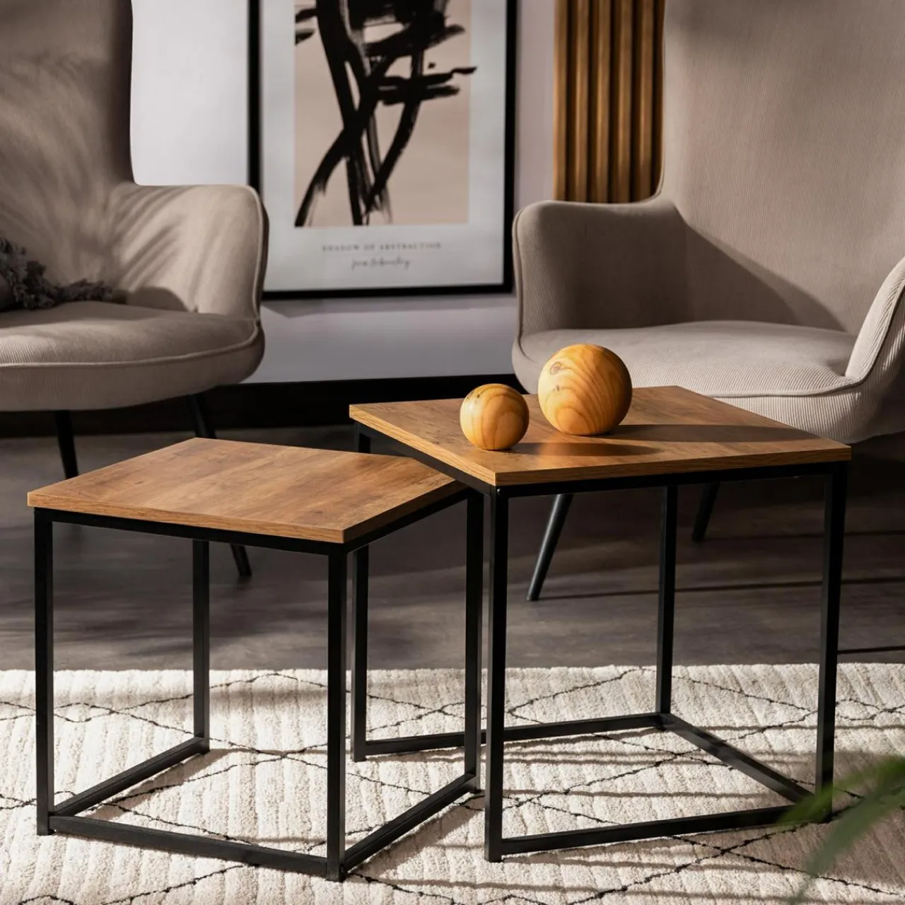 Komplet stolików FEMILE cechuje się prostym designem, który świetnie odnajdzie się w loftowych wnętrzach. Stoliki o różnych wysokościach sprawdzą się przy spotkaniach przy kawie czy pracy z laptopem.