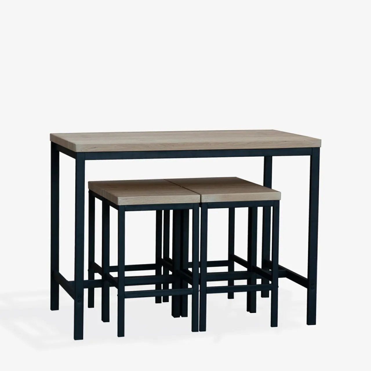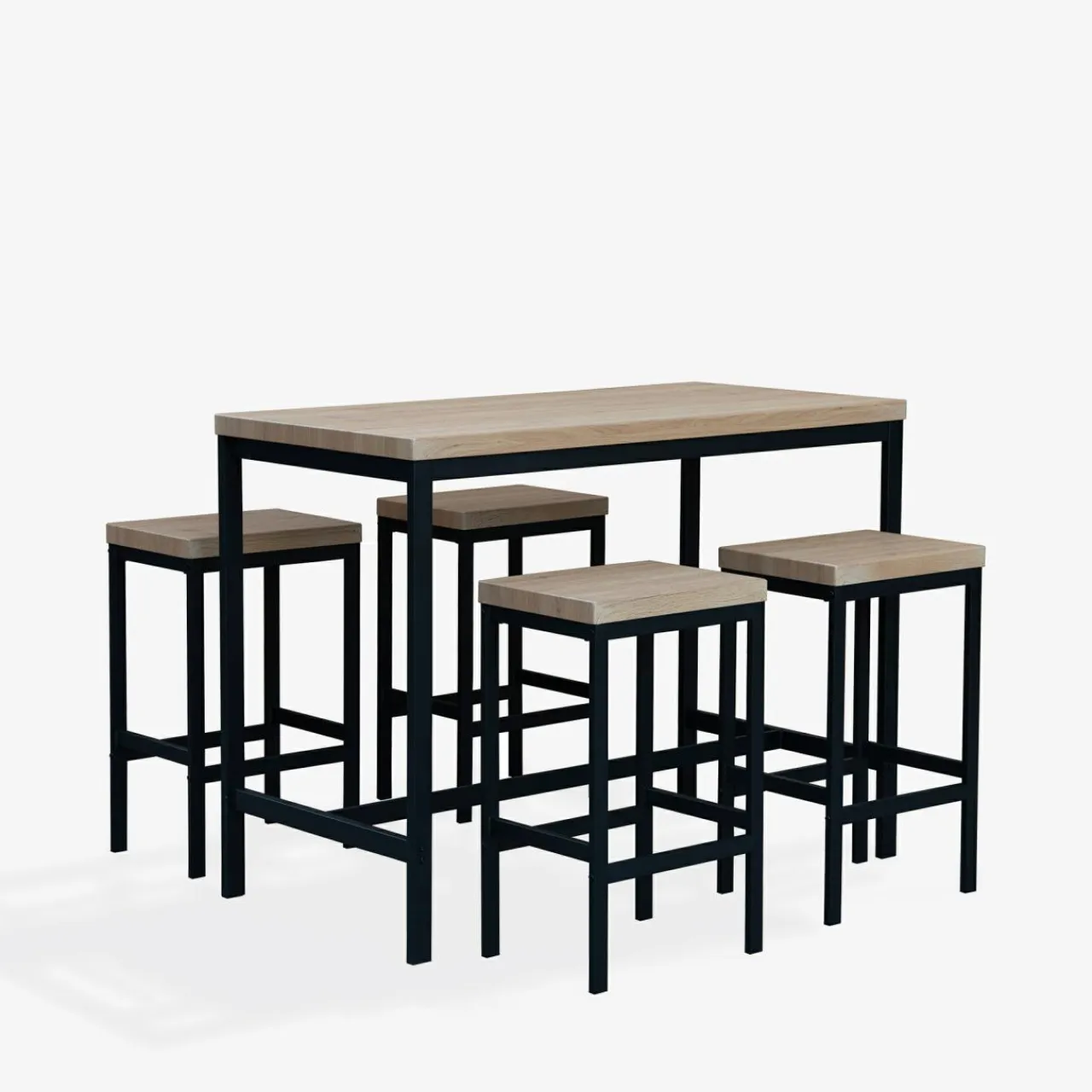 - Zestaw składa się ze stołu barowego z blatem o długości 120 cm i 4 stołków.