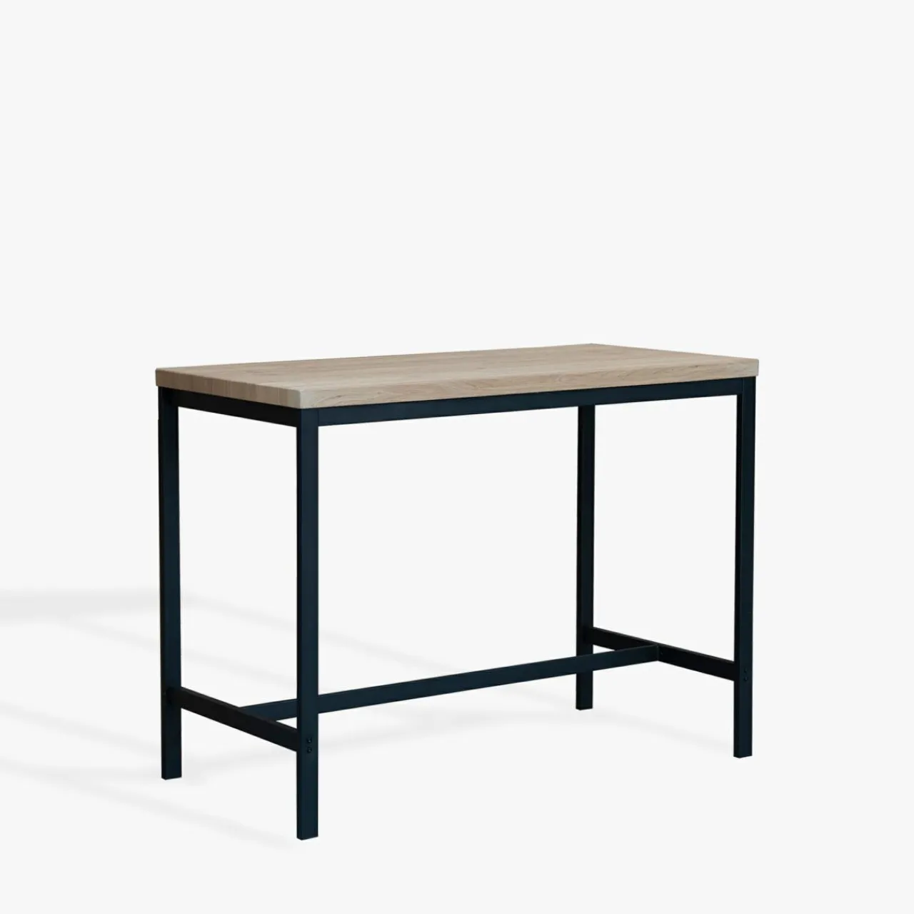 Metalowa podstawa w kolorze czarnym w połączeniu z jasną imitacją drewna podkreśli nowoczesny i industrialny charakter wnętrza.