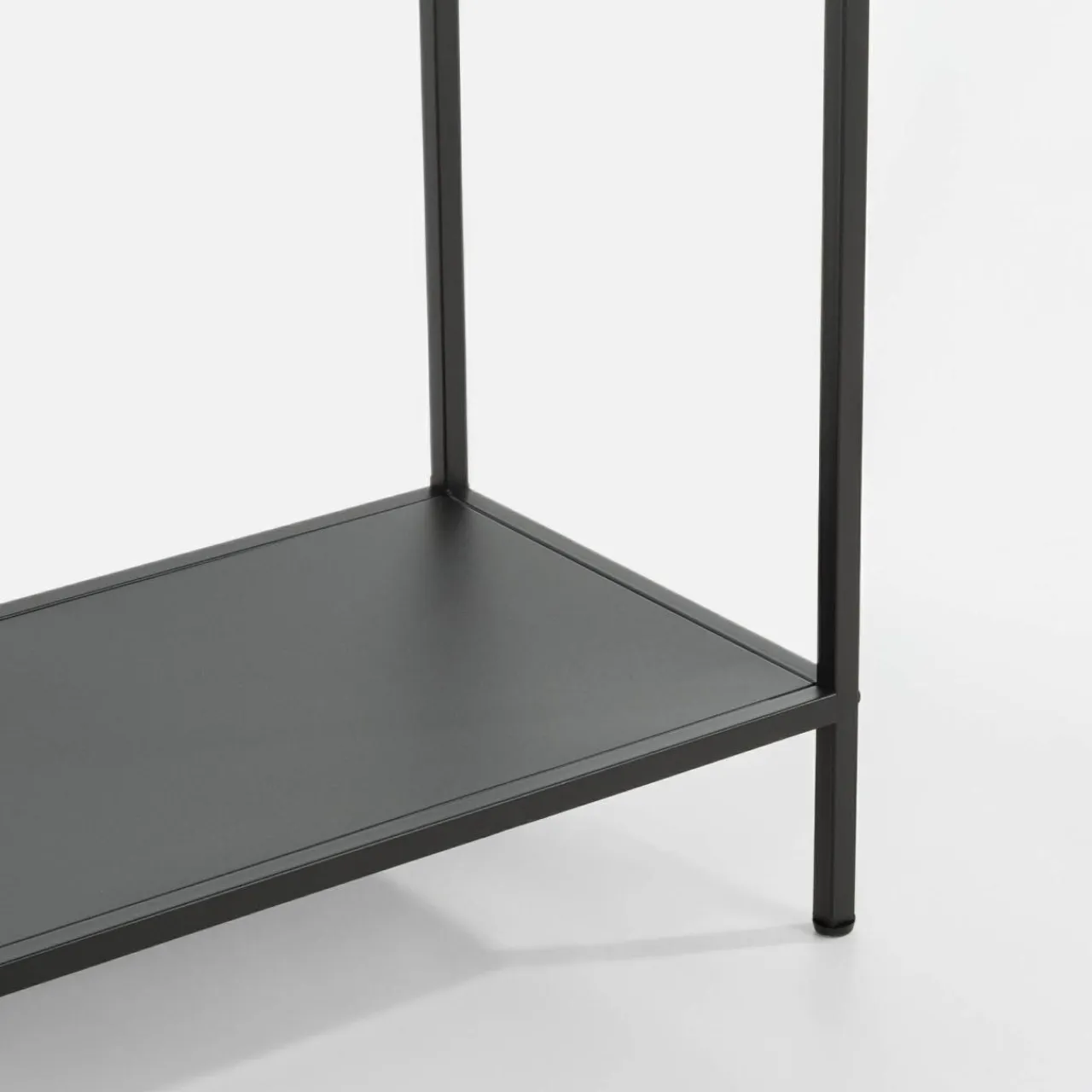 Czarna konsola HOCCA dzięki niewielkim wymiarom zajmuje mało miejsca, a jej uniwersalny design sprawdzi się w różnych aranżacjach.