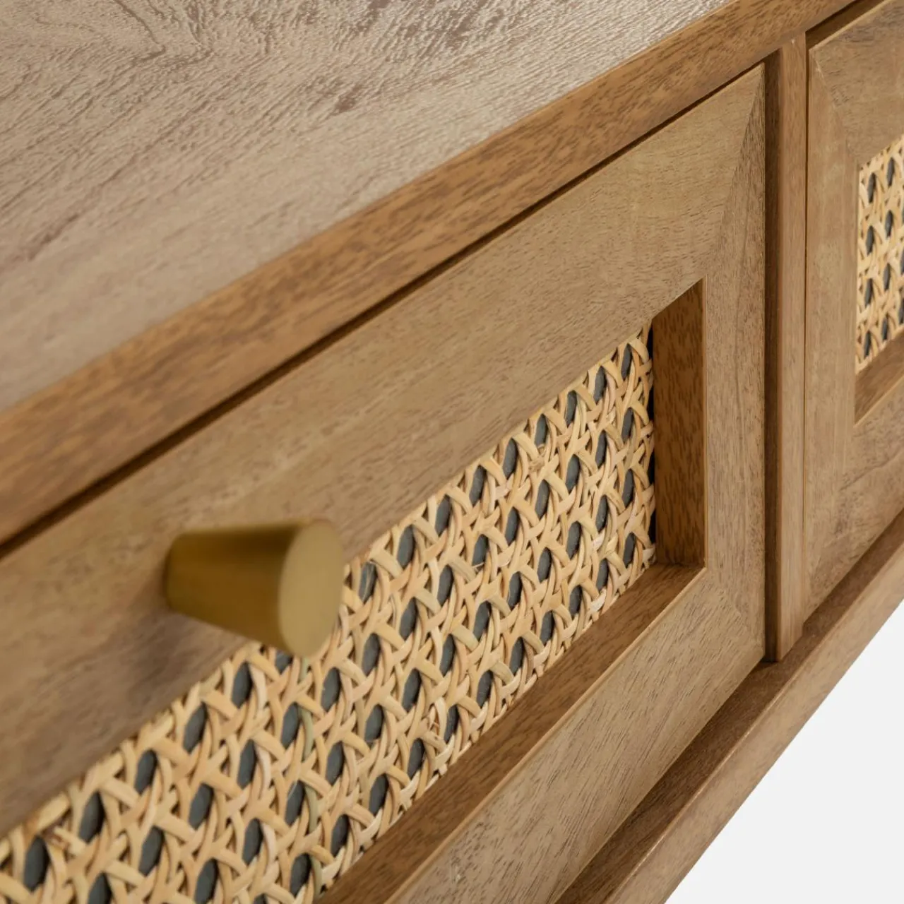 Kolekcję FUZIONE wyróżniają fronty wykonane z naturalnego rattanu, dlatego wpiszą się też w styl etniczny czy retro, dając Ci swobodę aranżacji.