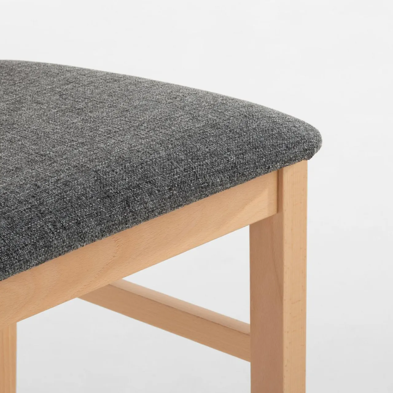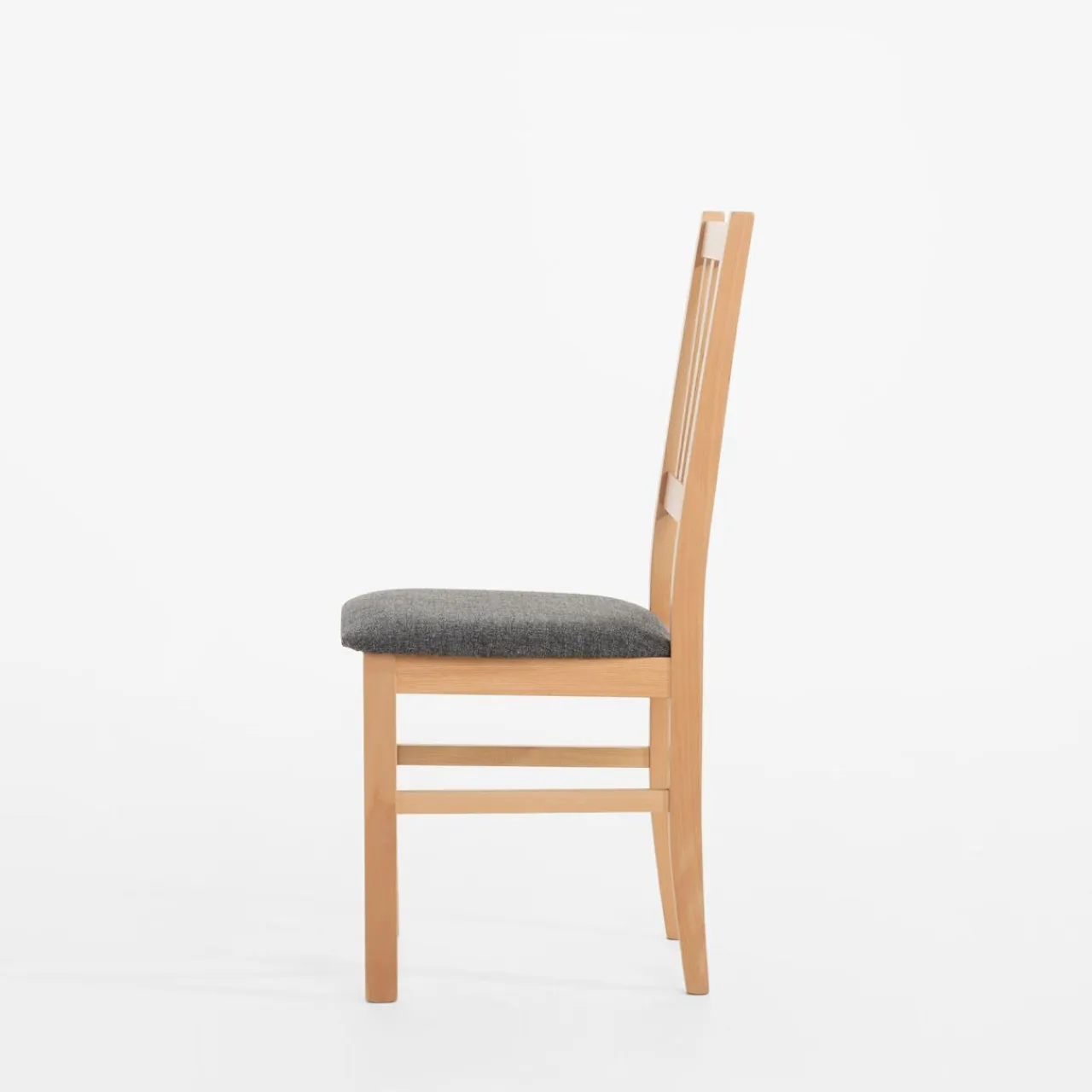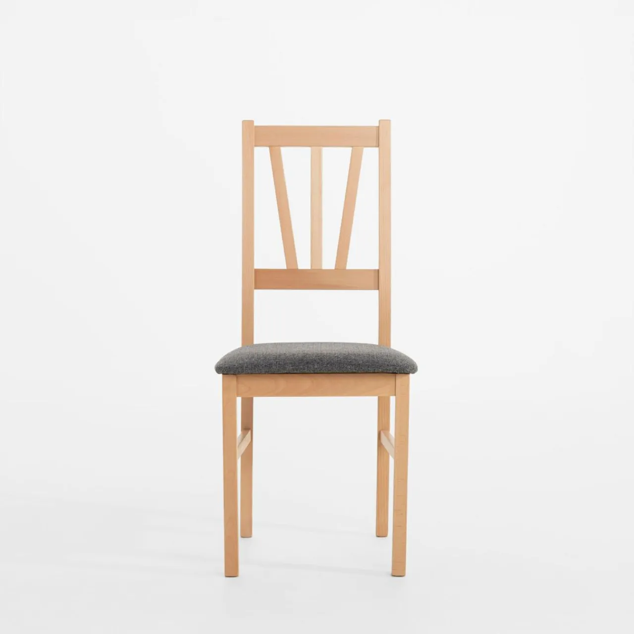 Drewniane krzesło z szarą tapicerką