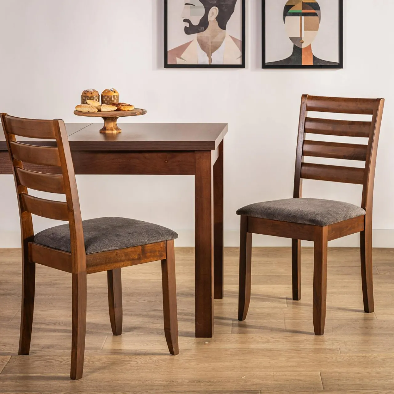 Wykonano je z drewna kauczukowego znanego ze swojej trwałości. Ciemna barwa drewna podkreśli tradycyjny charakter wnętrza.