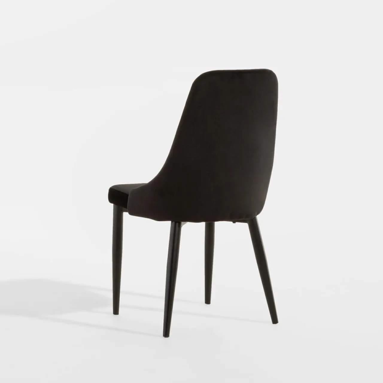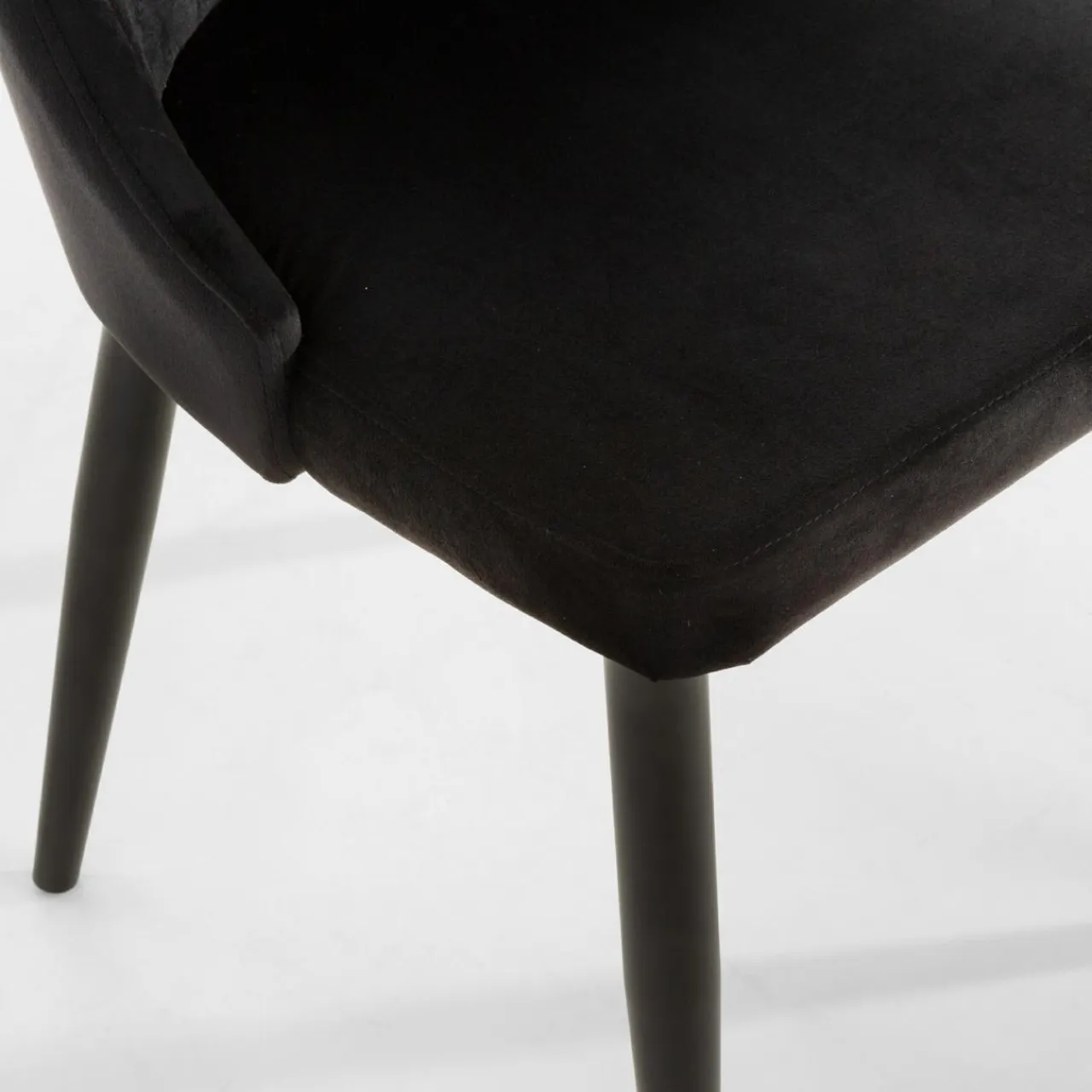 Krzesło HARBORE cechuje całkowicie czarne wybarwienie zarówno stalowego stelaża jak i siedziska wykończonego miękkim welurem. Krzesło wpisze się w nowoczesne i loftowe wnętrza. Będzie świetnym tłem dla innych kolorów, skomponuje się z niemal każdym odcieniem stołu.