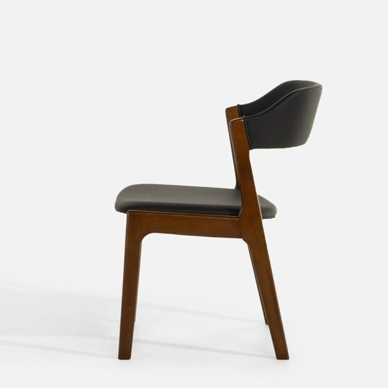 Designerskie krzesło RILMONO inspirowane projektami z lat 60. będzie stanowić prawdziwą ozdobę jadalni. Czekoladowe wybarwienie drewna i czarna ekoskóra sprawią, że krzesło stworzy udany zestaw z ciemnym stołem w jadalni.