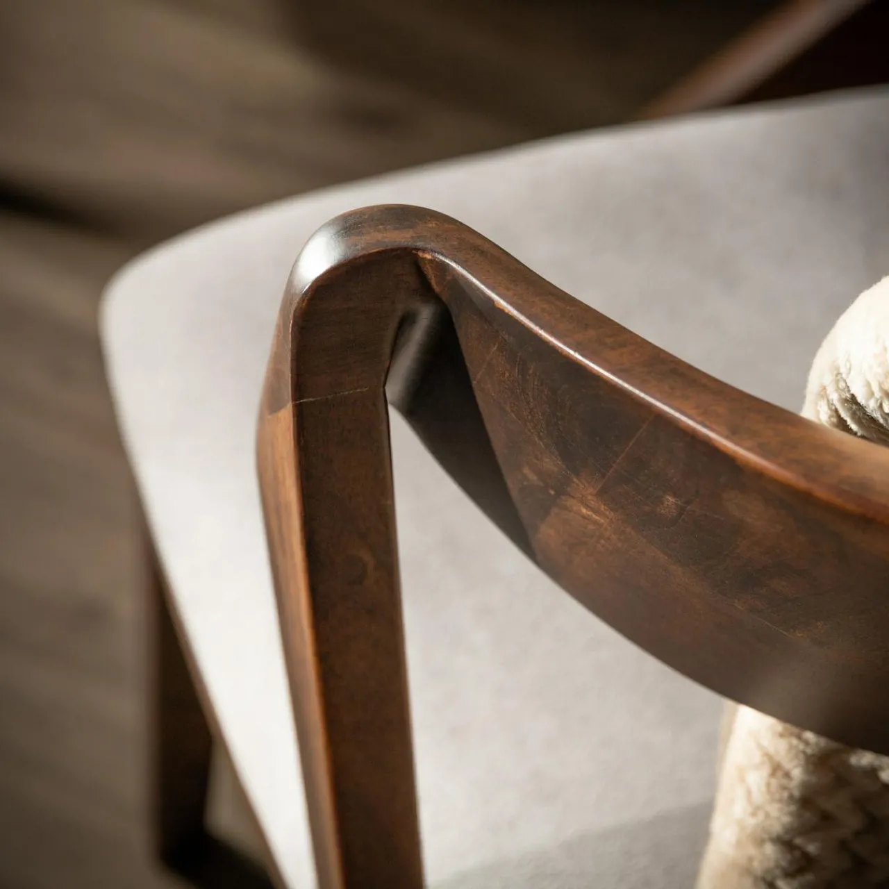 • Konstrukcja z naturalnego drewna – oparcie i stelaż wykonane z litego drewna kauczukowego z lakierem w kolorze orzecha, dodają ciepła każdemu wnętrzu.