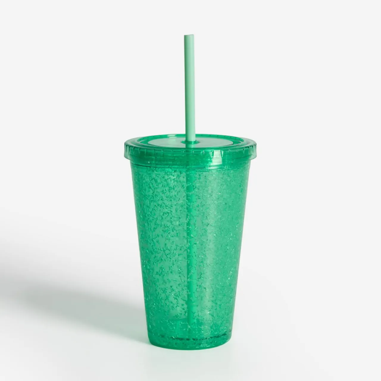 inny Kubek plastikowy ze słomką zielony 500 ml