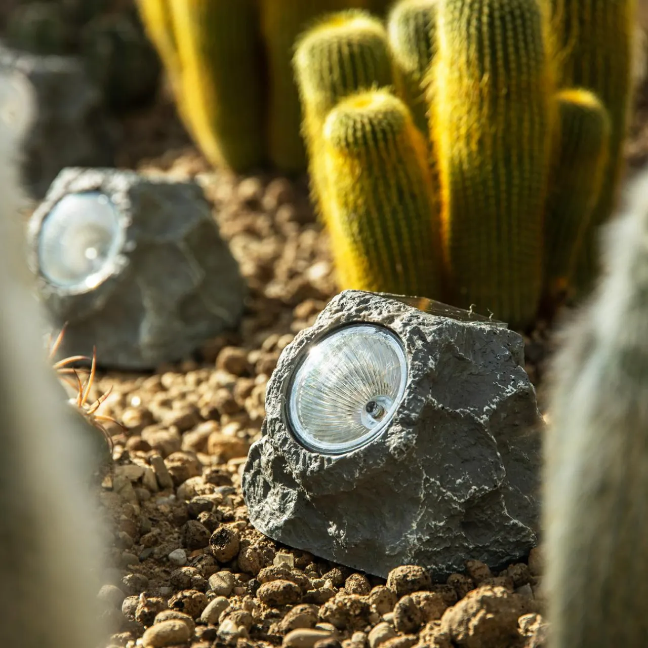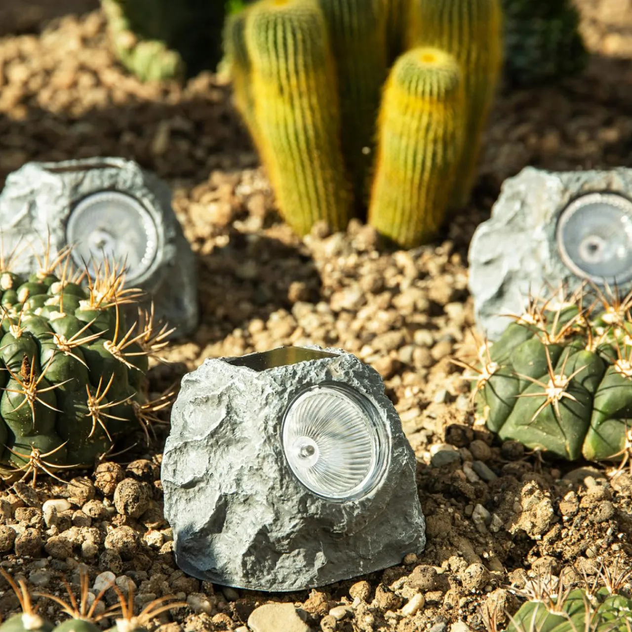 Outdoorowa lampa dekoracyjna w kształcie skały świetnie wtopi się w otoczenie, a jednocześnie nada Twojej kolekcji roślin o zmierzchu malowniczy światłocień.