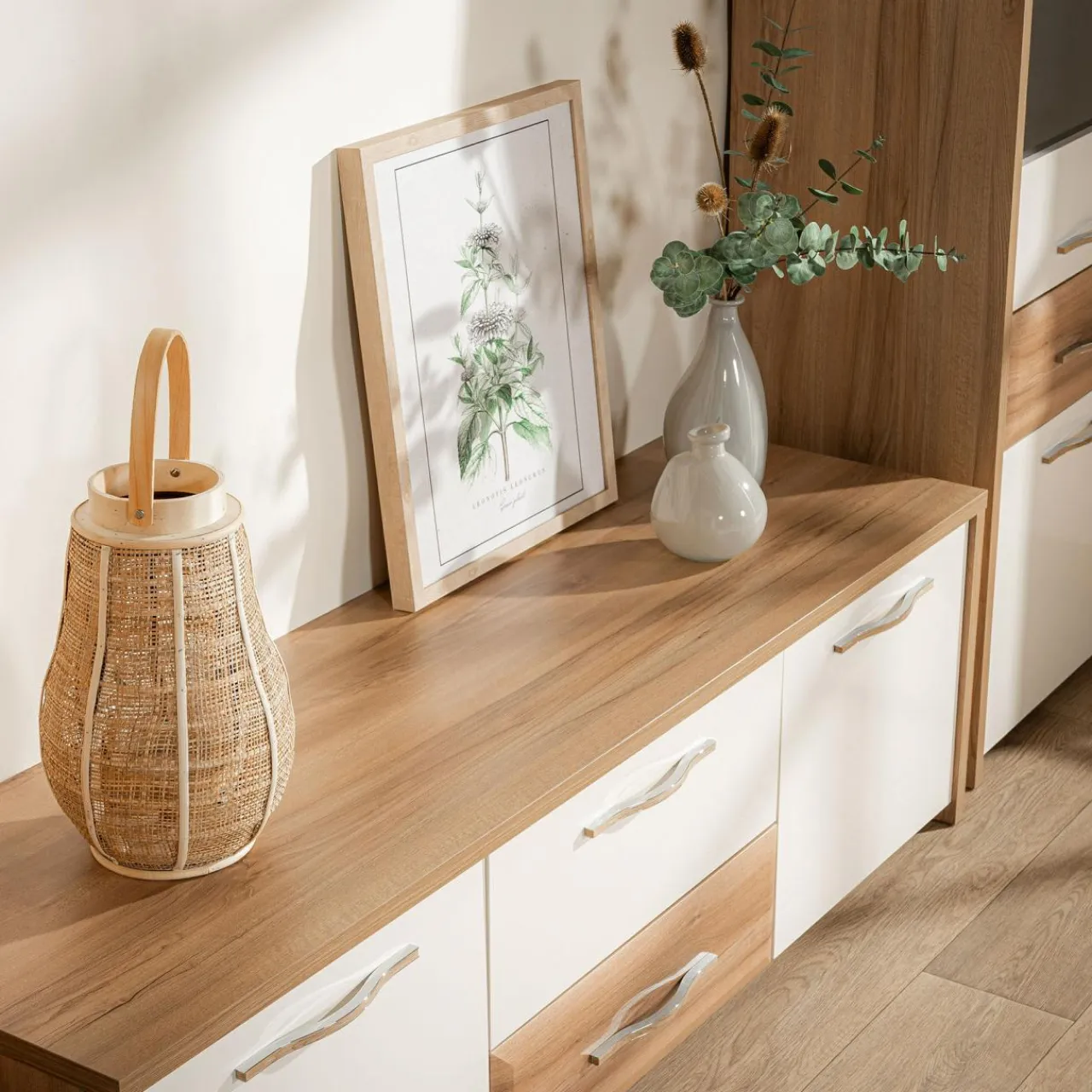 Drewniane elementy dodają trwałości i podkreślają organiczny, surowy styl, który doskonale pasuje do wnętrz w estetyce boho, rustykalnej czy skandynawskiej.