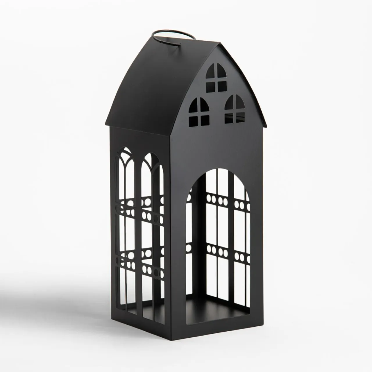 Stwórz przytulną atmosferę w swoim domu dzięki czarnej latarence w kształcie domku o wysokości 32 cm.Jej oryginalny, elegancki design przypominający mały domek z oknami, to idealna dekoracja, która doda wnętrzu ciepła i uroku.