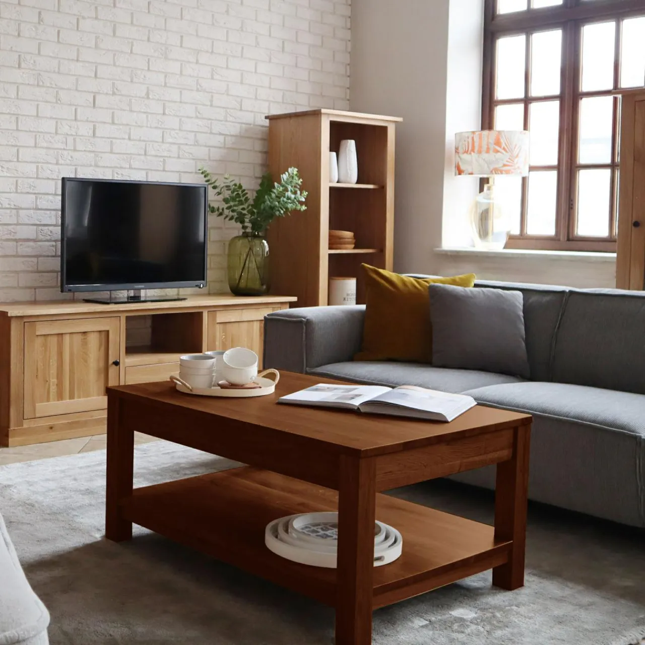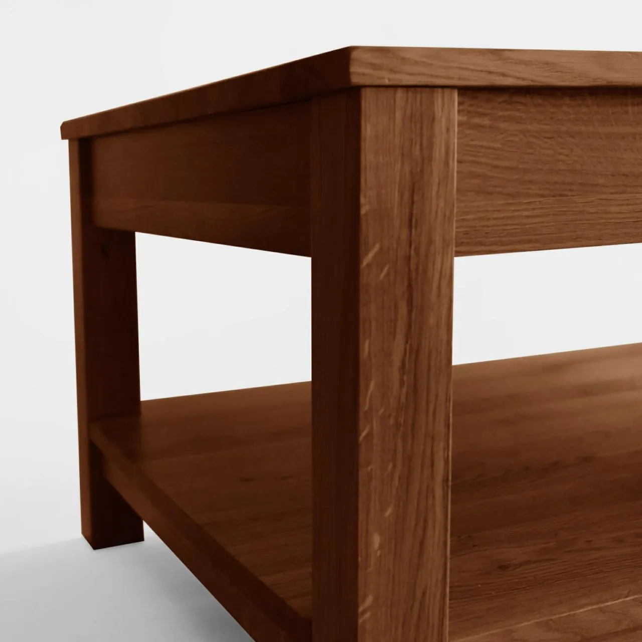 - Praktyczna półka – dodatkowa przestrzeń pod blatem pozwala na przechowywanie pilotów czy dekoracji, co pomaga utrzymać porządek..