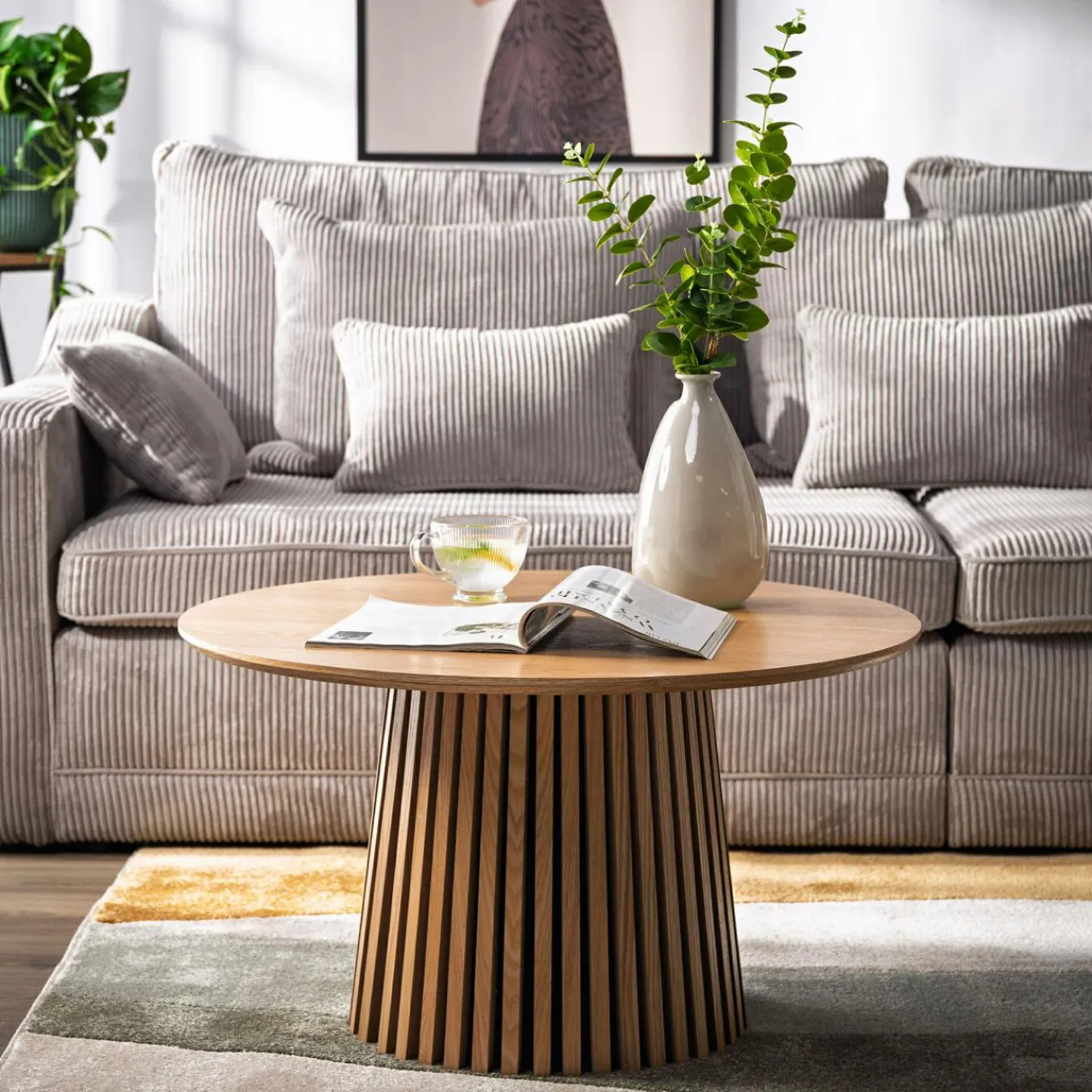 Ława LIRANDANO to okrągły stolik kawowy, który dzięki swoim kompaktowym wymiarom i wykończeniu idealnie wpasuje się do salonu, tworząc przytulną atmosferę.