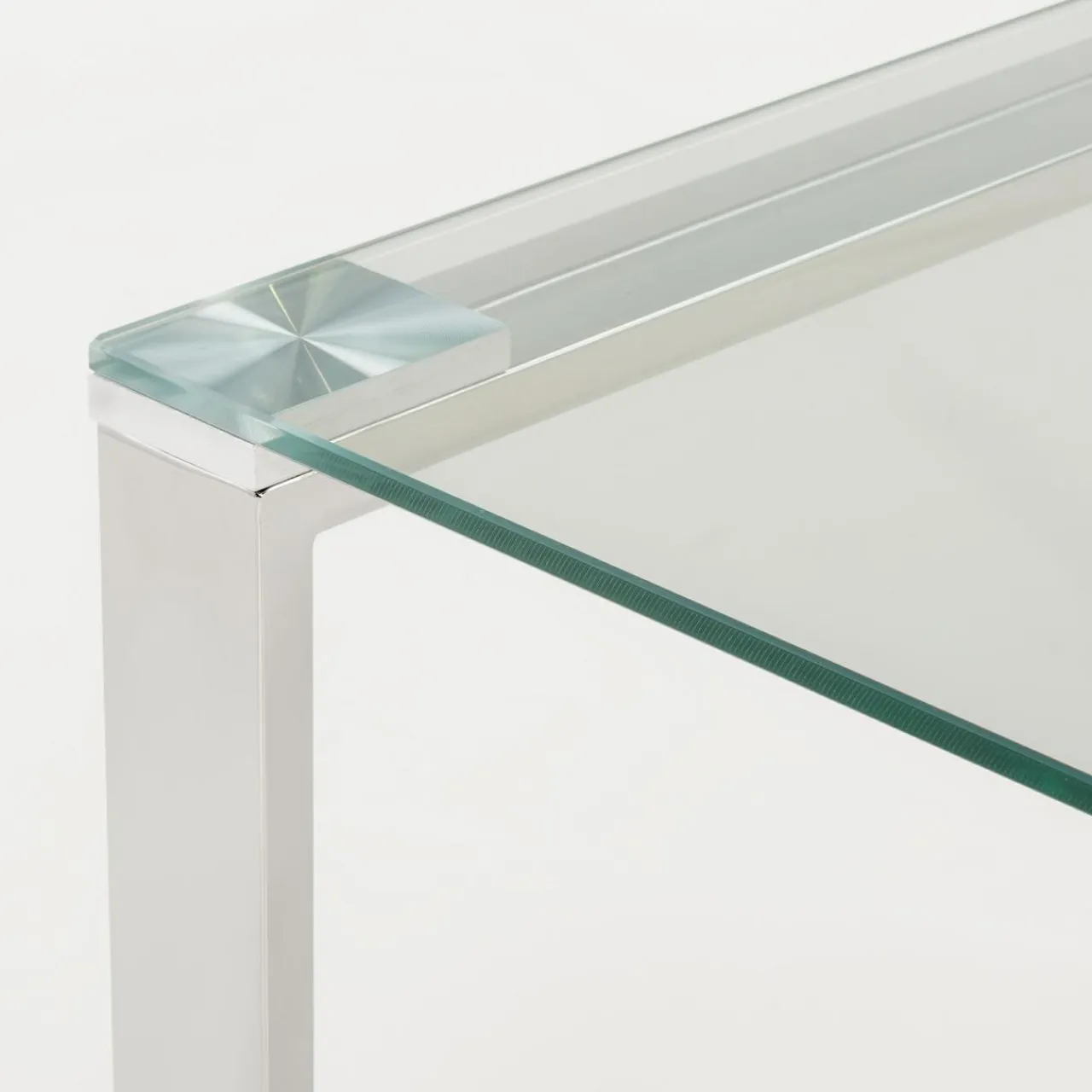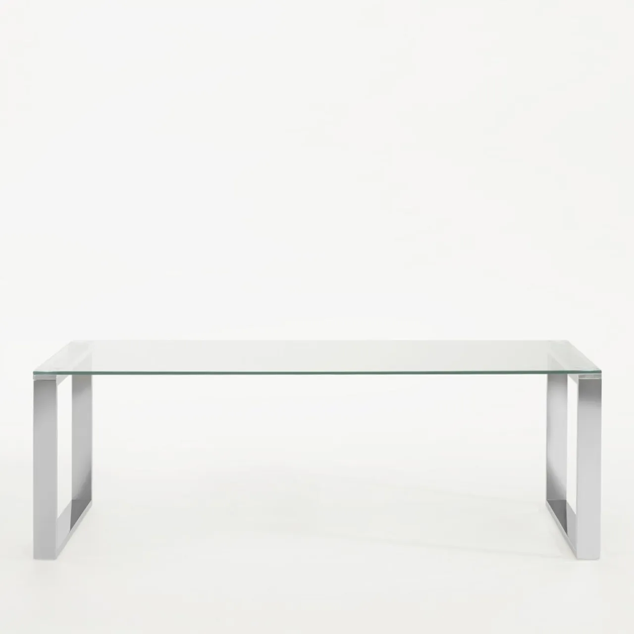 - Blat ławy został wykonany ze szkła hartowanego; przezroczystość dodaje mu lekkości i elegancji.