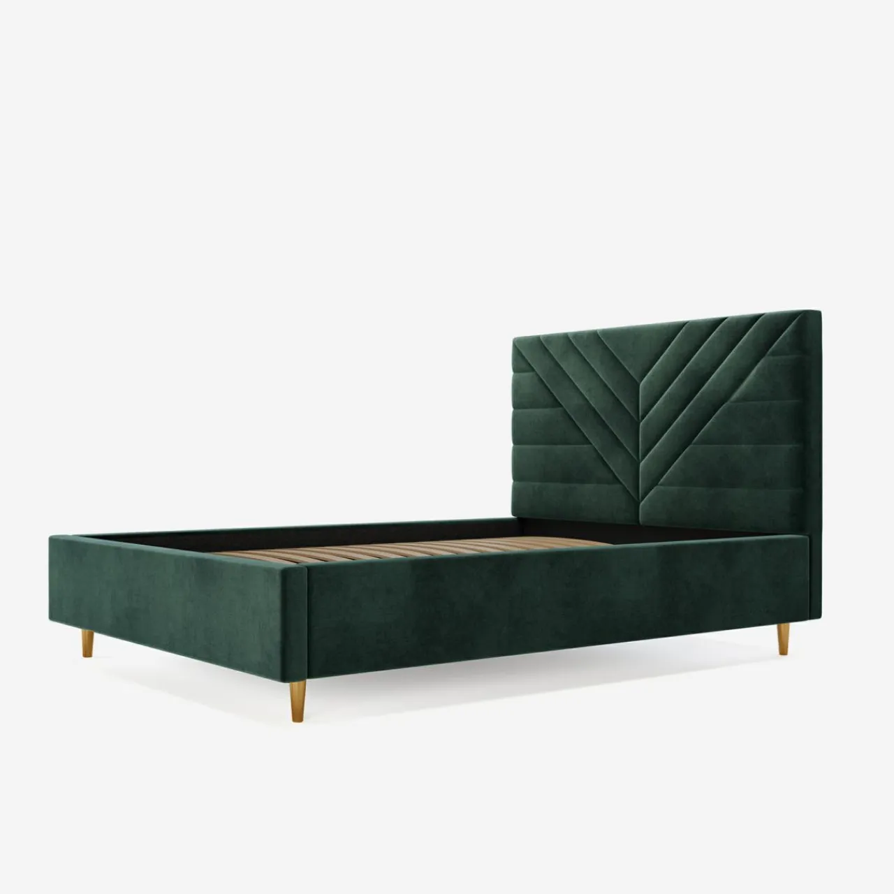 Welurowe łóżko NICOLA wpisze się w wystrój eleganckiej sypialni. Ciemnozielony kolor świetnie przełamie neutralny wystrój, dzięki czemu Twoje wnętrze zyska intymnego charakteru.