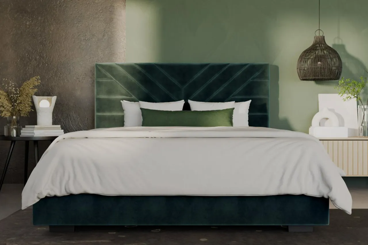 Welurowe łóżko NICOLA wpisze się w wystrój eleganckiej sypialni. Ciemnozielony kolor świetnie przełamie neutralny wystrój, dzięki czemu Twoje wnętrze zyska intymnego charakteru.