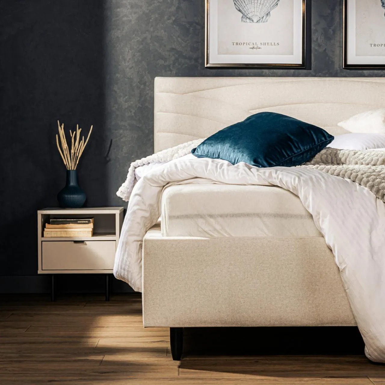 Urządzasz minimalistyczną sypialnię w neutralnych barwach? Łóżko LAURA pokryto kremową tkaniną, która nada Twojej sypialni ciepła i stworzy przytulny klimat.