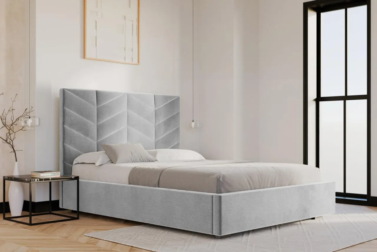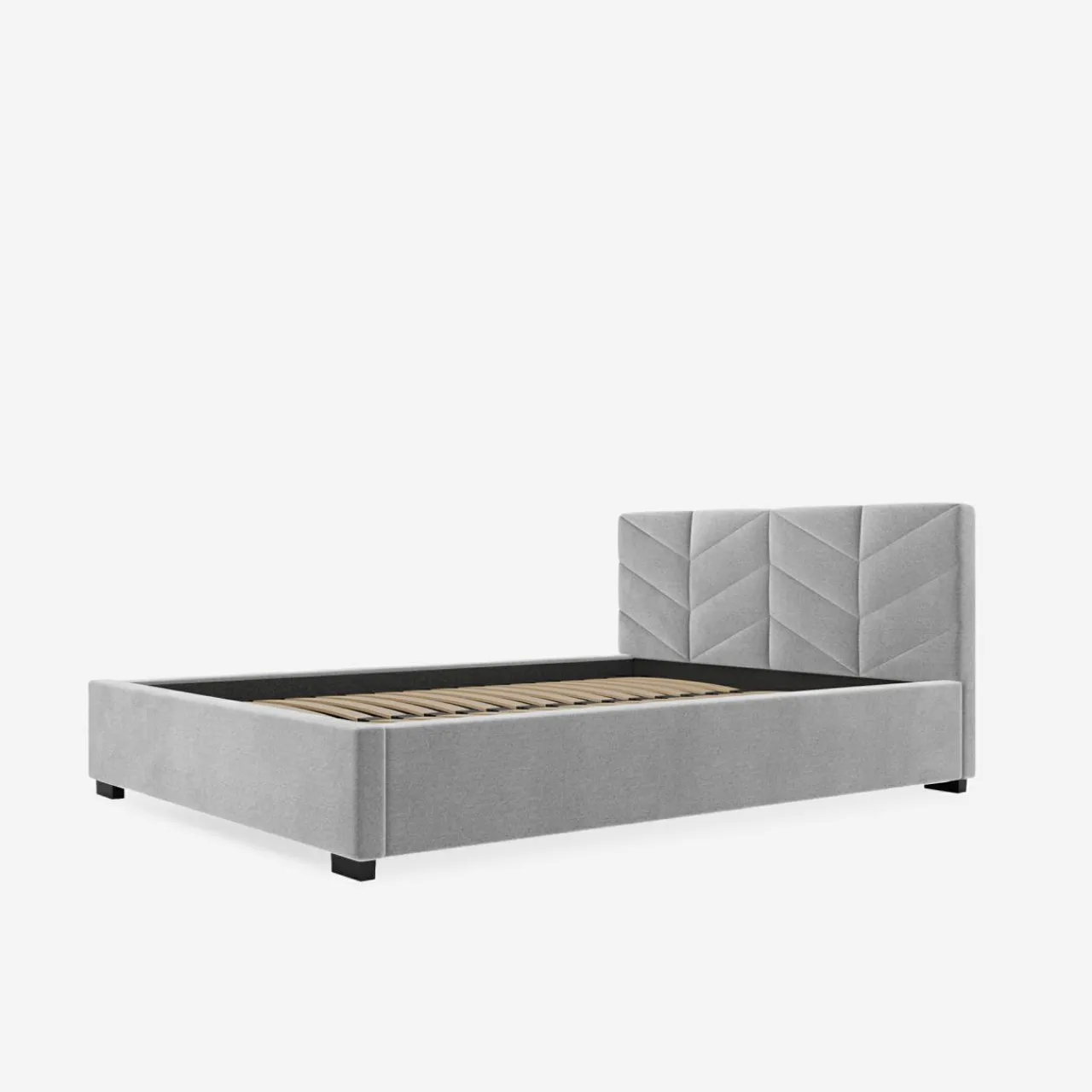 - Łóżko jest wyposażone w tapicerowaną ramę oraz stelaż, które stworzą komfortową powierzchnię spania dla 2 osób.