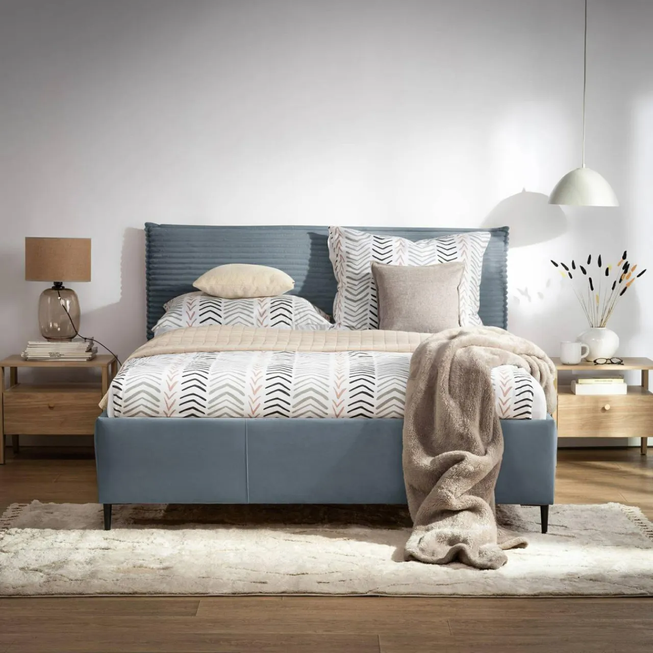 Po dniu pełnym wrażeń czas na błogi sen. Łóżko LIVA FULL z sztruksowym wezgłowiem sprawi, że Twoja sypialnia zamieni się w prawdziwą oazę spokoju.