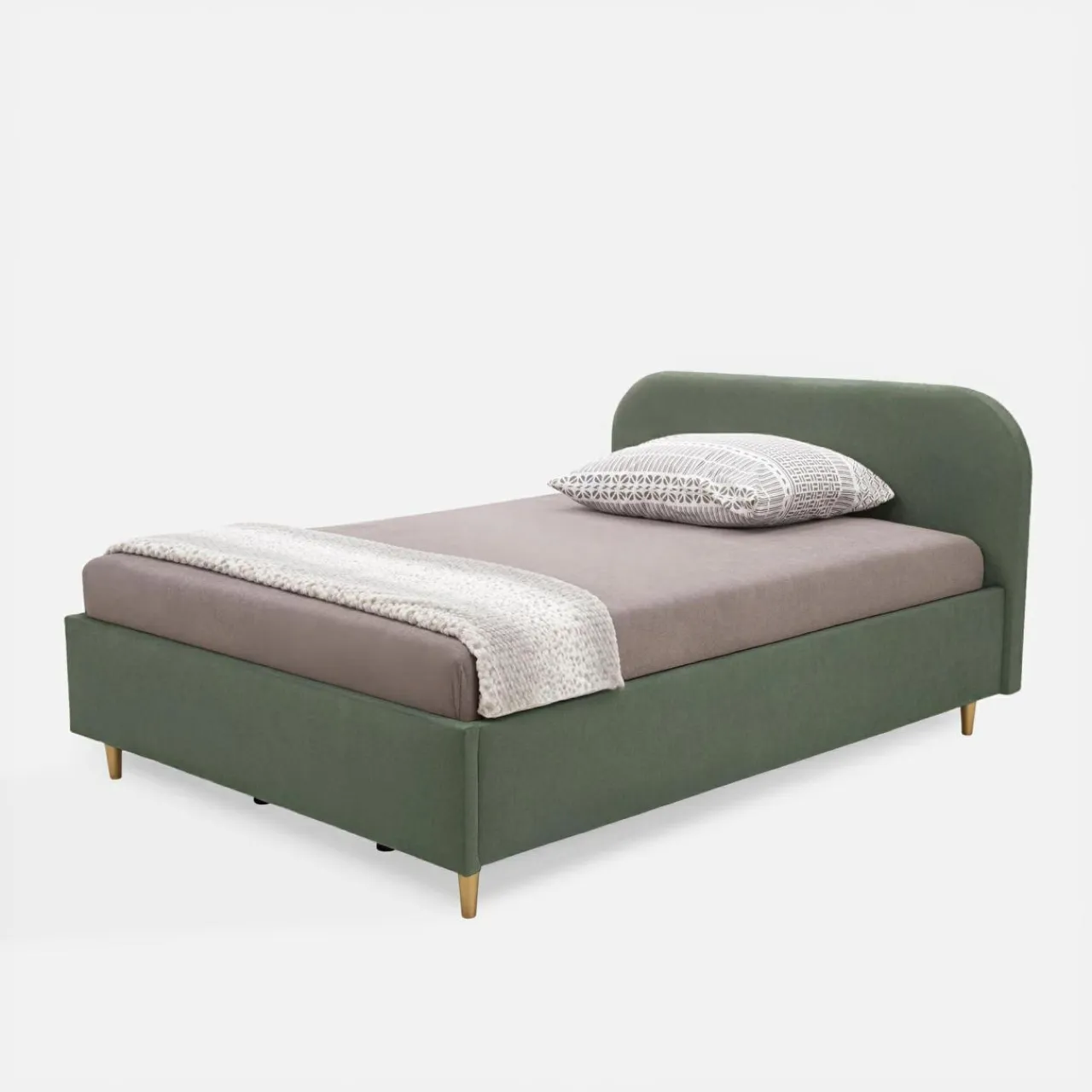 Marzysz o sypialni w stonowanych barwach? Łóżko SANTADI urzeknie Cię oliwkowym welurem i złotymi nóżkami, które stworzą aranżację pełną harmonii.