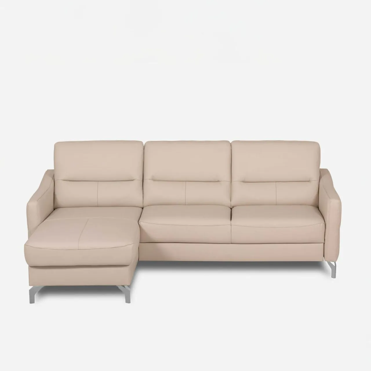 Narożnik FARO w jasnobeżowej tapicerce z chromowanymi nóżkami to idealny wybór dla osób, które cenią elegancję i funkcjonalność. Twój salon zyska świeżość i lekkość, a także komfortową przestrzeń do codziennego relaksu i spotkań z najbliższymi.