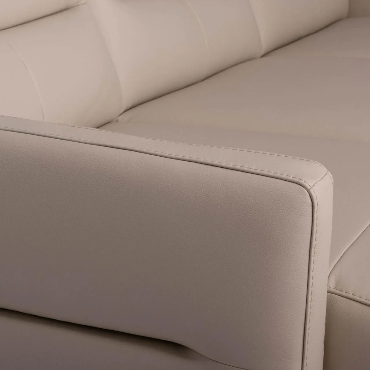 - Narożnik obity jest mixem skór (naturalna i ekologiczna) w kolorze jasnobeżowym.