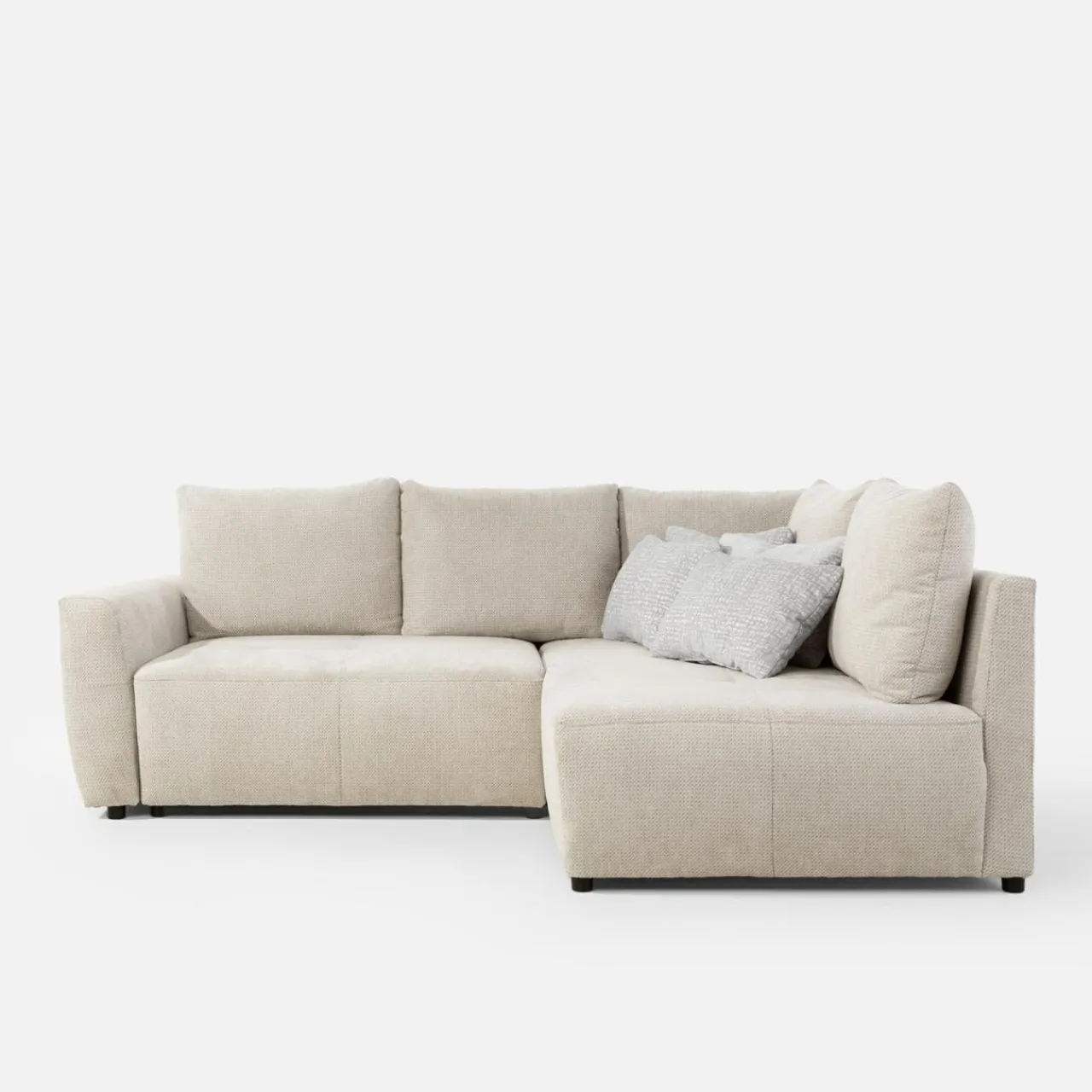 - Pojemnik pod siedziskiem to dodatkowa przestrzeń, którą wykorzystasz na pościel i inne domowe tekstylia. Dostęp do niego uzyskasz podczas rozkładania narożnika.