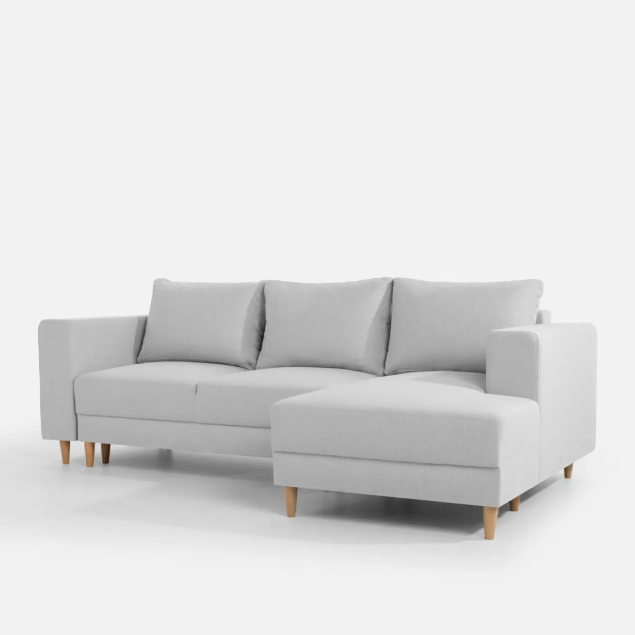 Prosta linia narożnika PERA wpisze się w wystrój nowoczesnego salonu. Wysokie nóżki z drewna nadadzą lekkości, dzięki czemu narożnik nie przytłoczy wnętrza.