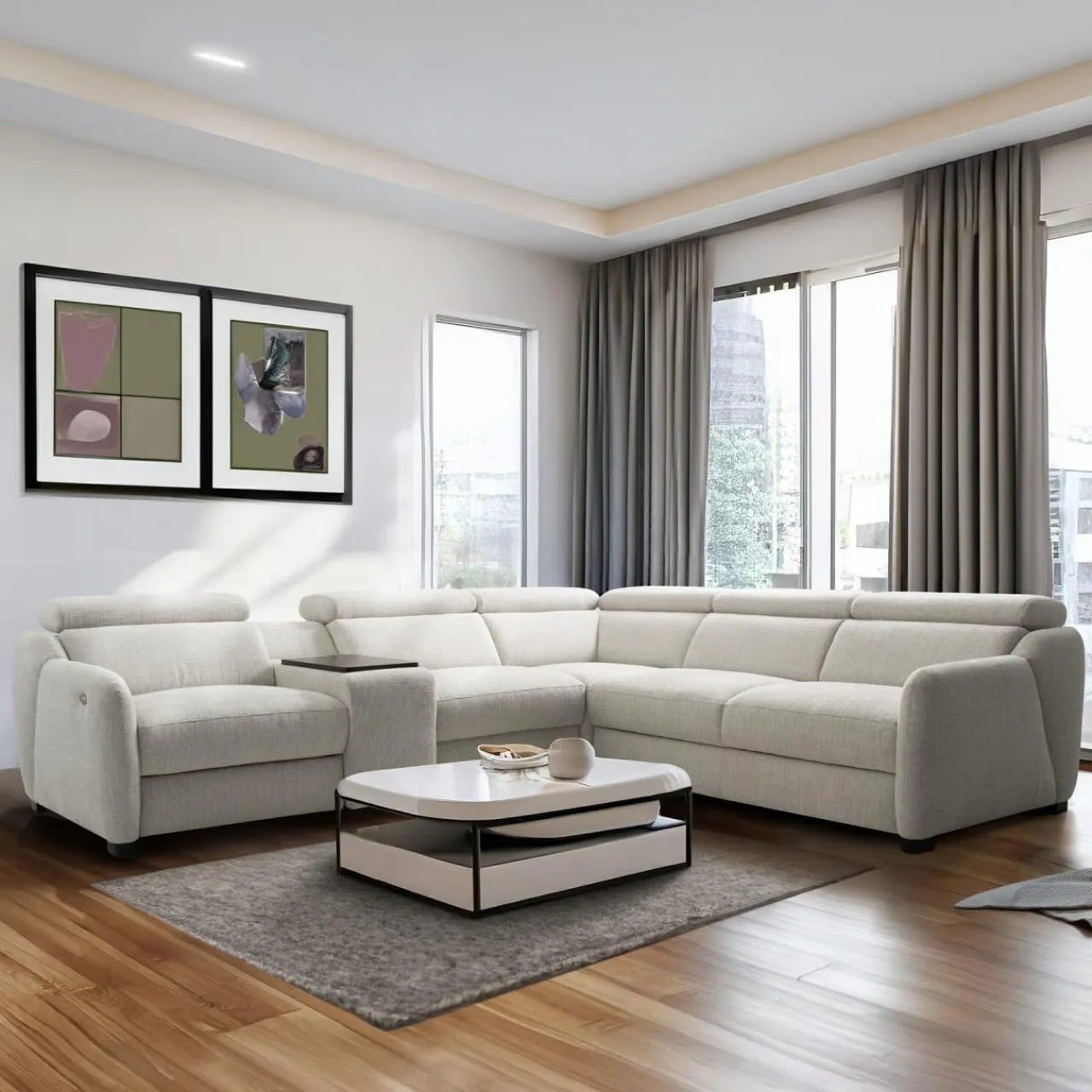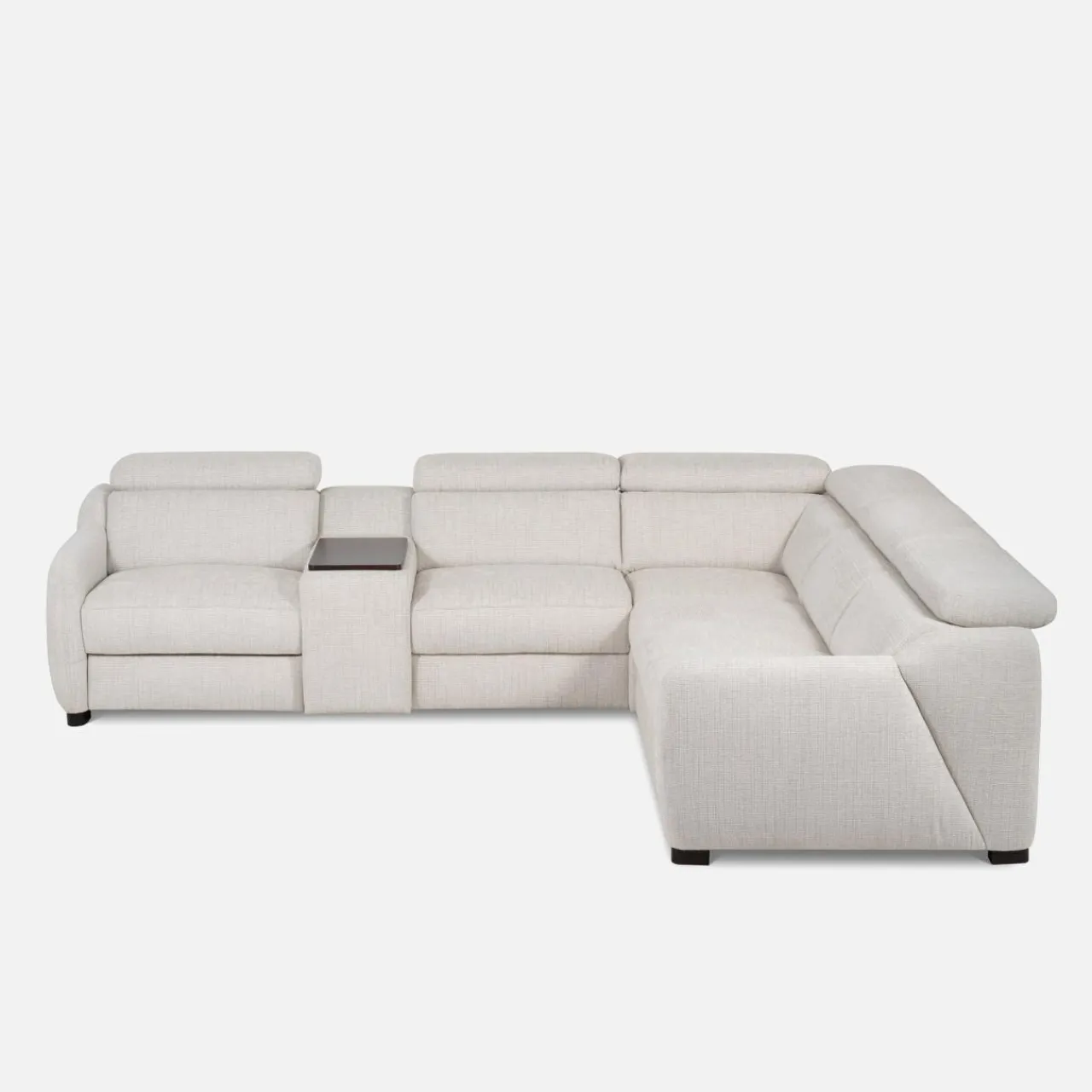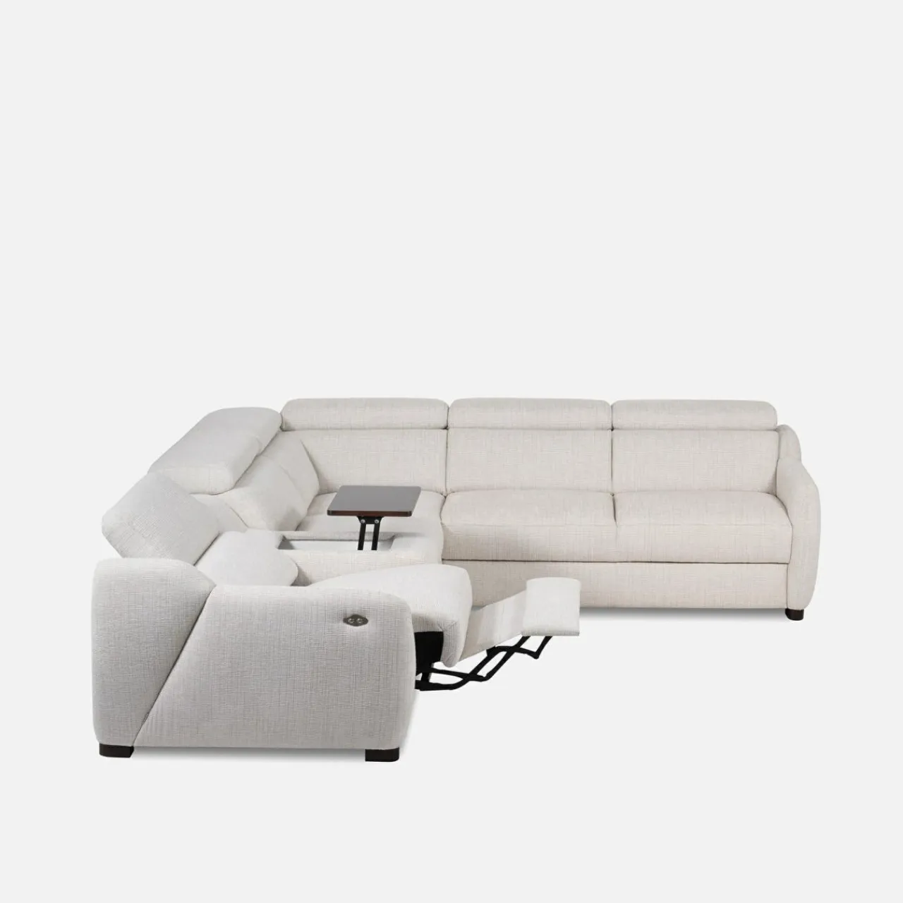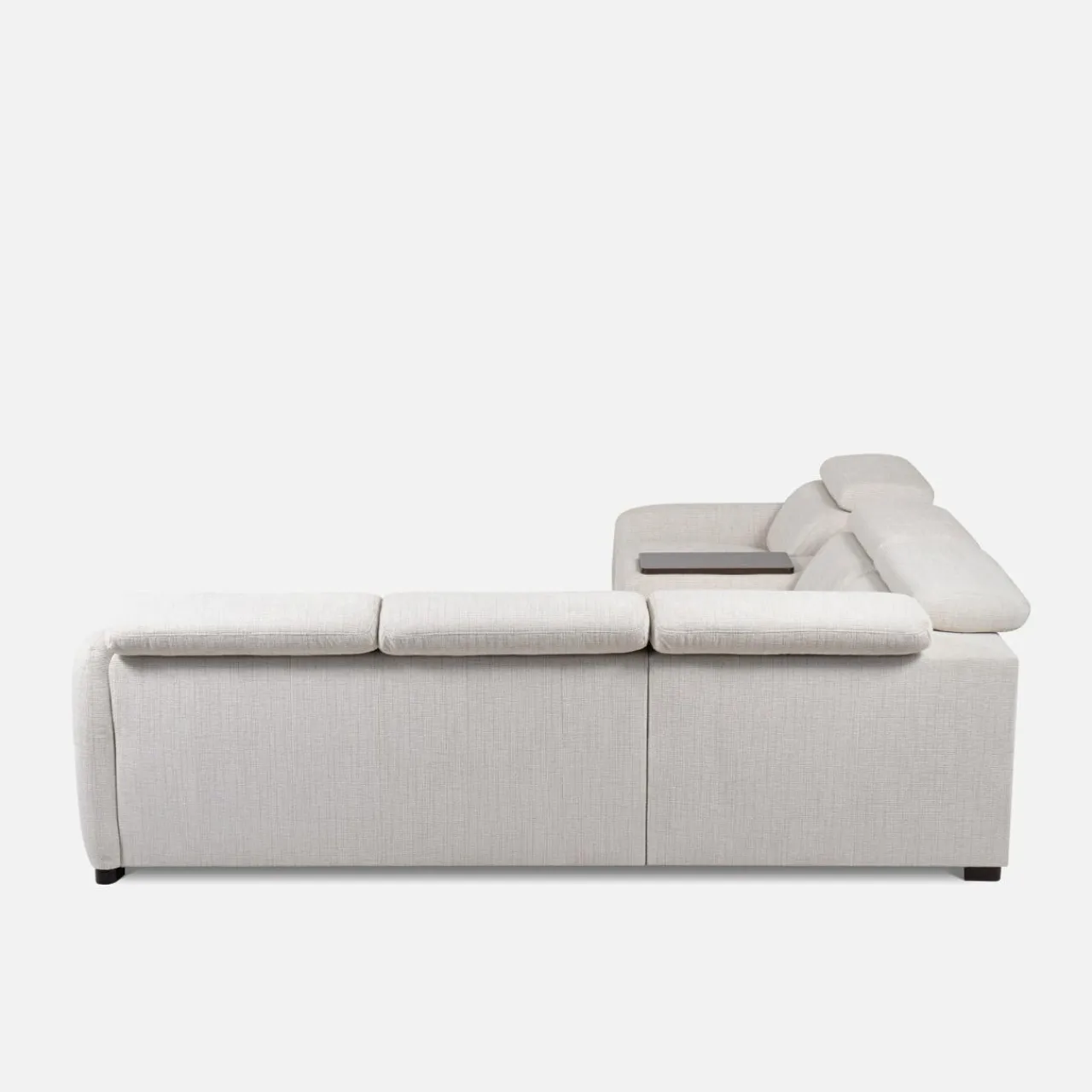 - Narożnik wyposażony jest w fotel z elektryczną funkcją relaks, która pozwala rozsiąść się wygodnie w pozycji półleżącej — idealnej do oglądania filmów, czytania książek lub po prostu relaksu.
