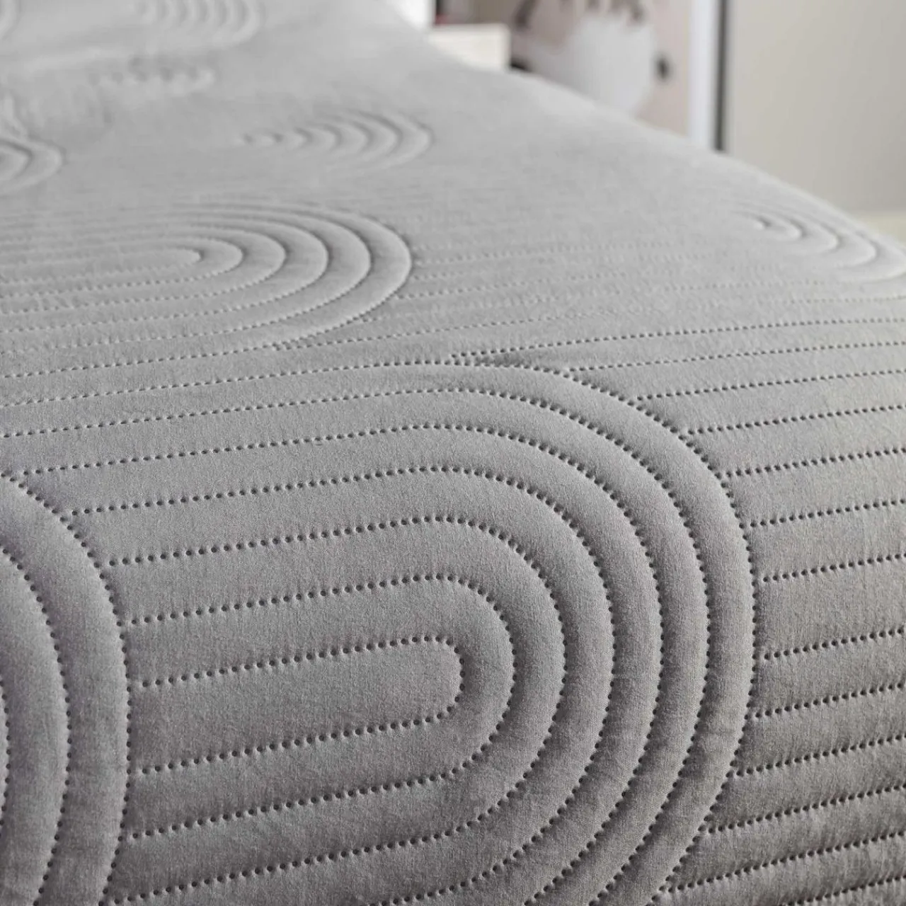 Jasnoszara narzuta TOSCA z geometrycznym wzorem subtelnie przyciągnie uwagę. Sypialnia zyska elegancki akcent.
