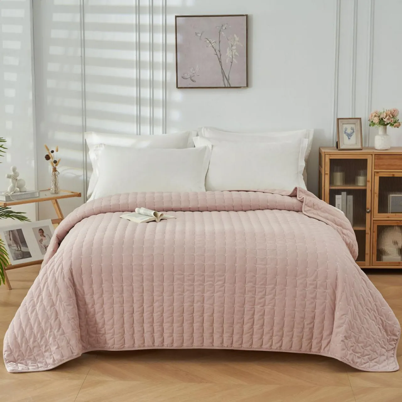 Subtelna różowa narzuta LOVELY o wymiarach 220×200 cm, która doda wnętrzu romantycznego uroku.